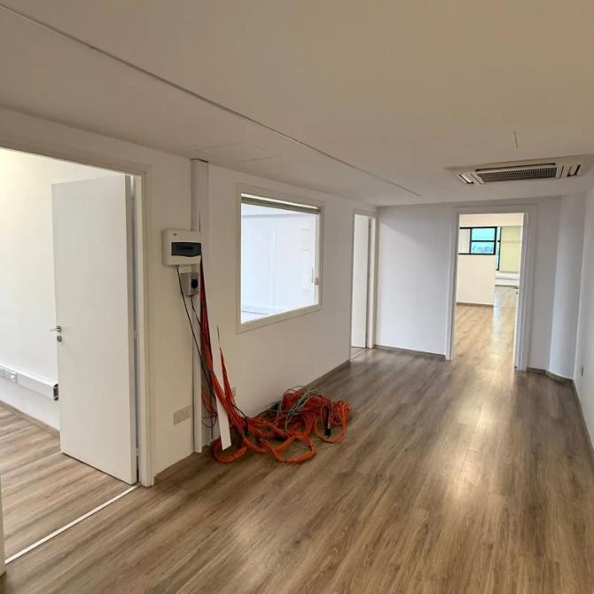 Office space for rent in Omonia Limassol area of 280 m2 near the new port. The office was built in 1994 and includes six workrooms, a reception, two toilets, four parking spaces, air conditioners, roller blinds, LED lighting and a structured cabling system.