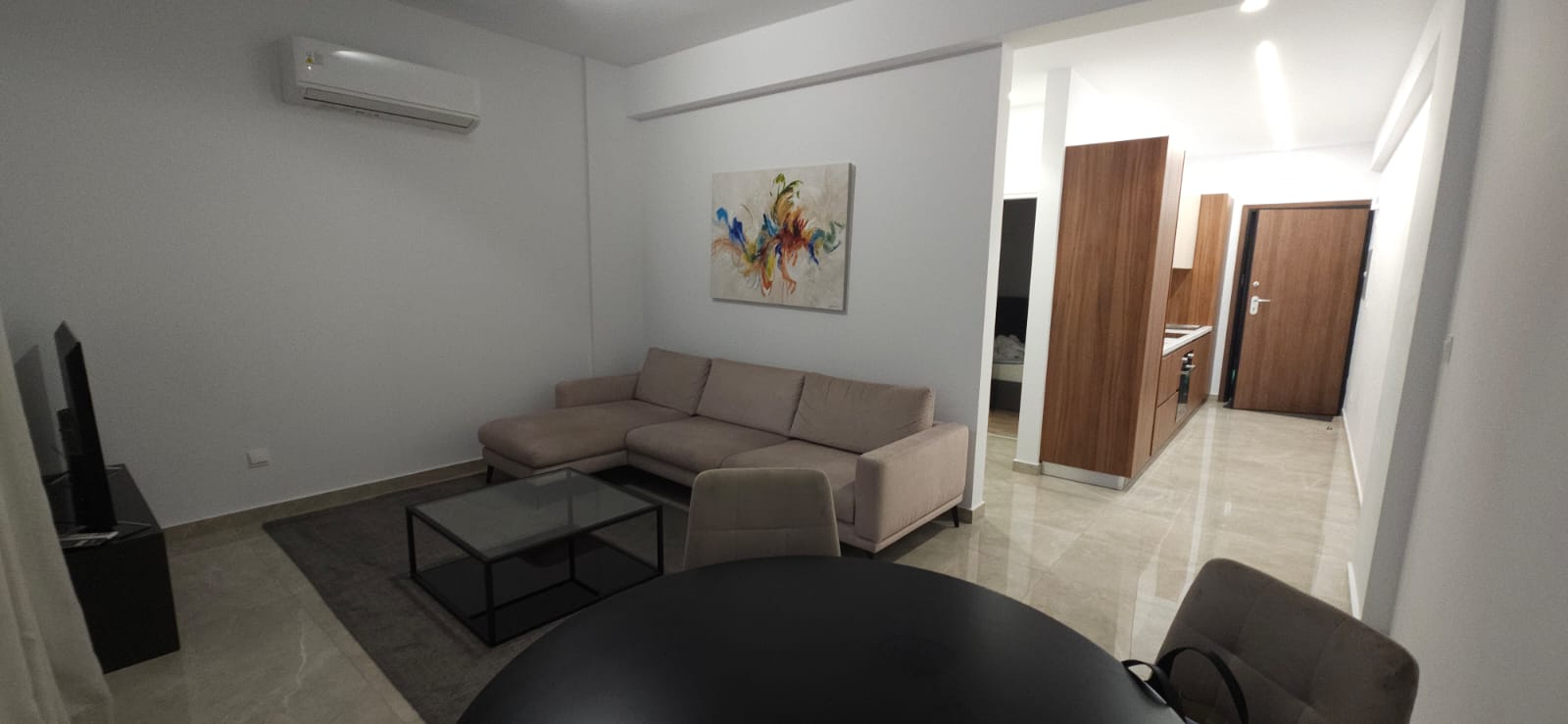 Spacious modern 1-bedroom apartment for rent in Zakaki, Limassol. It is fully furnished with modern furniture and equipped with household appliances. Air conditioning, double glazing and blinds on the windows, built-in wardrobes, solar panels, video intercom and telephone entry system, pressurized hot and cold water supply system are installed. There is a covered parking for the car. There is a fenced and landscaped garden on site. The house is located next to all necessary infrastructure, 500 m from Ladies Smile beach and My Mall and Casino.