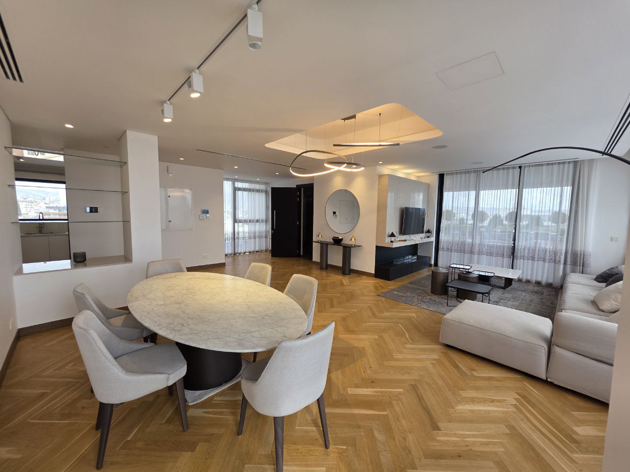 3 bedroom penthouse for rent in a gated community in the area of Mesa Geitonia, Limassol. Living area of 146 m2, covered veranda of 75 m2, open veranda of 124 m2. The apartments are furnished, all rooms have air conditioning, a VRV system in the living room, underfloor heating. The kitchen has all the appliances and appliances, as well as a small refrigerator for wine. There is a parking lot and a storage room. There is a charging station for an electric car in the parking lot. There is a Smart Home system that can be controlled from a smartphone. Pets are not allowed. The complex is within walking distance of the entire infrastructure.