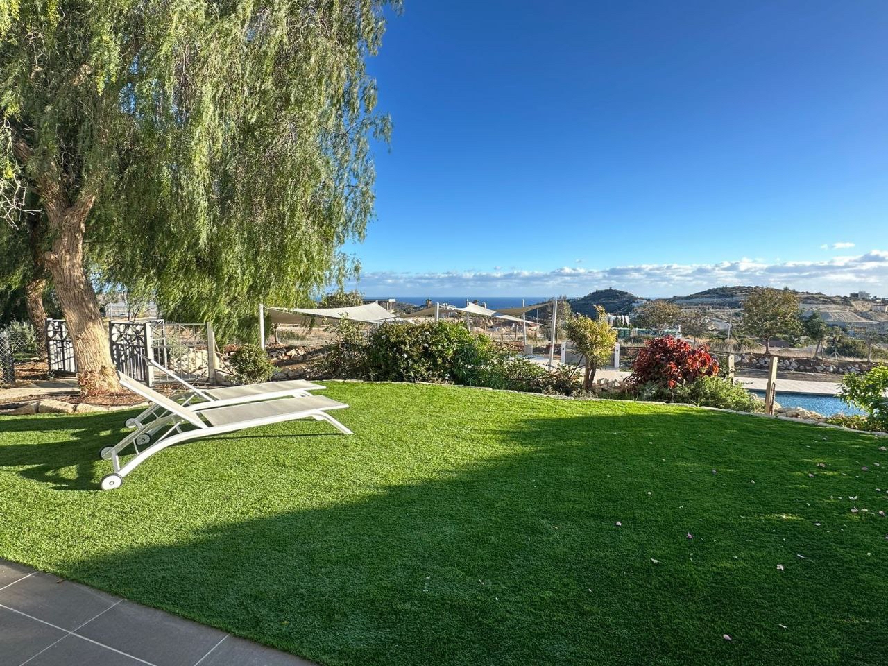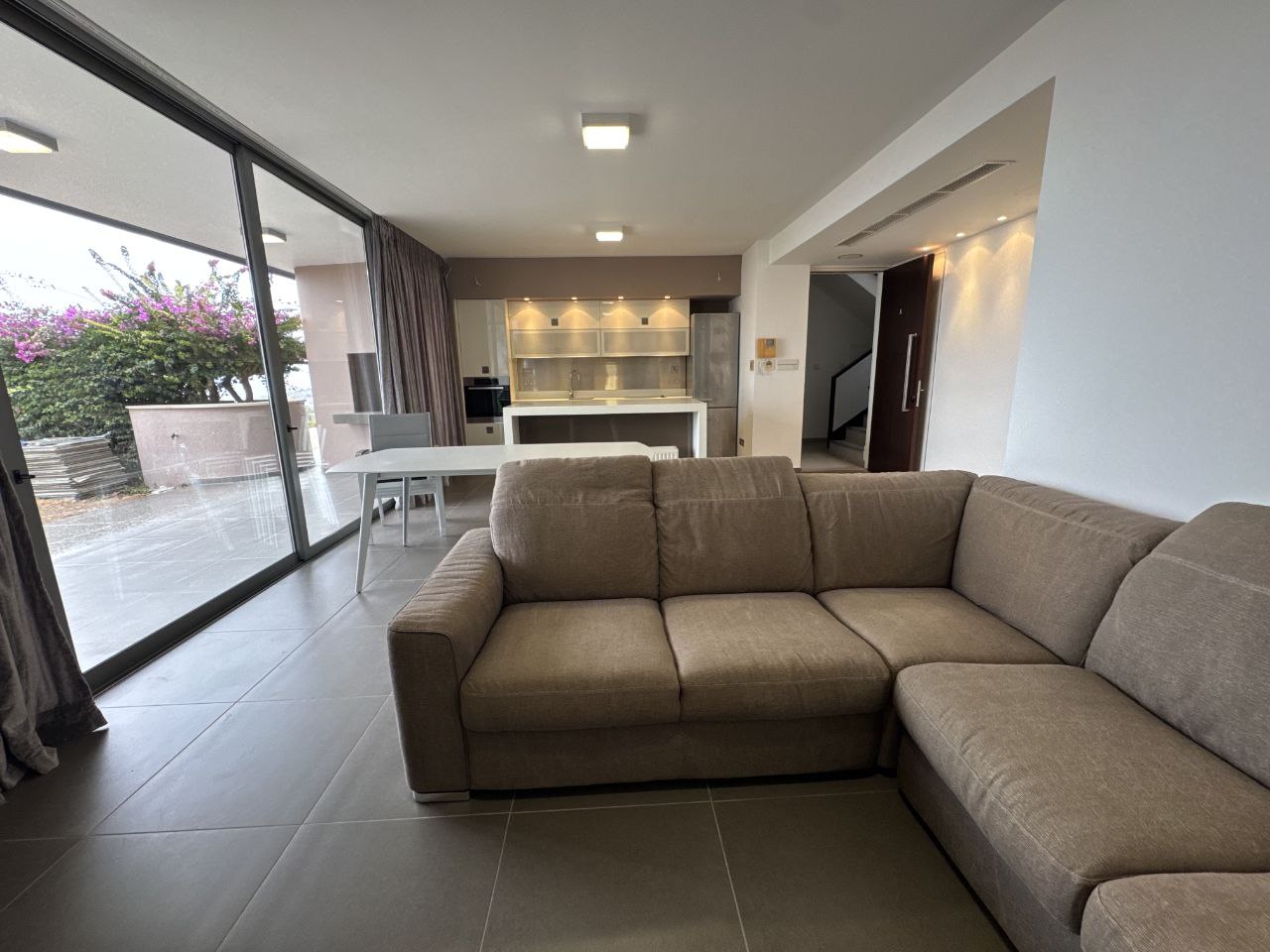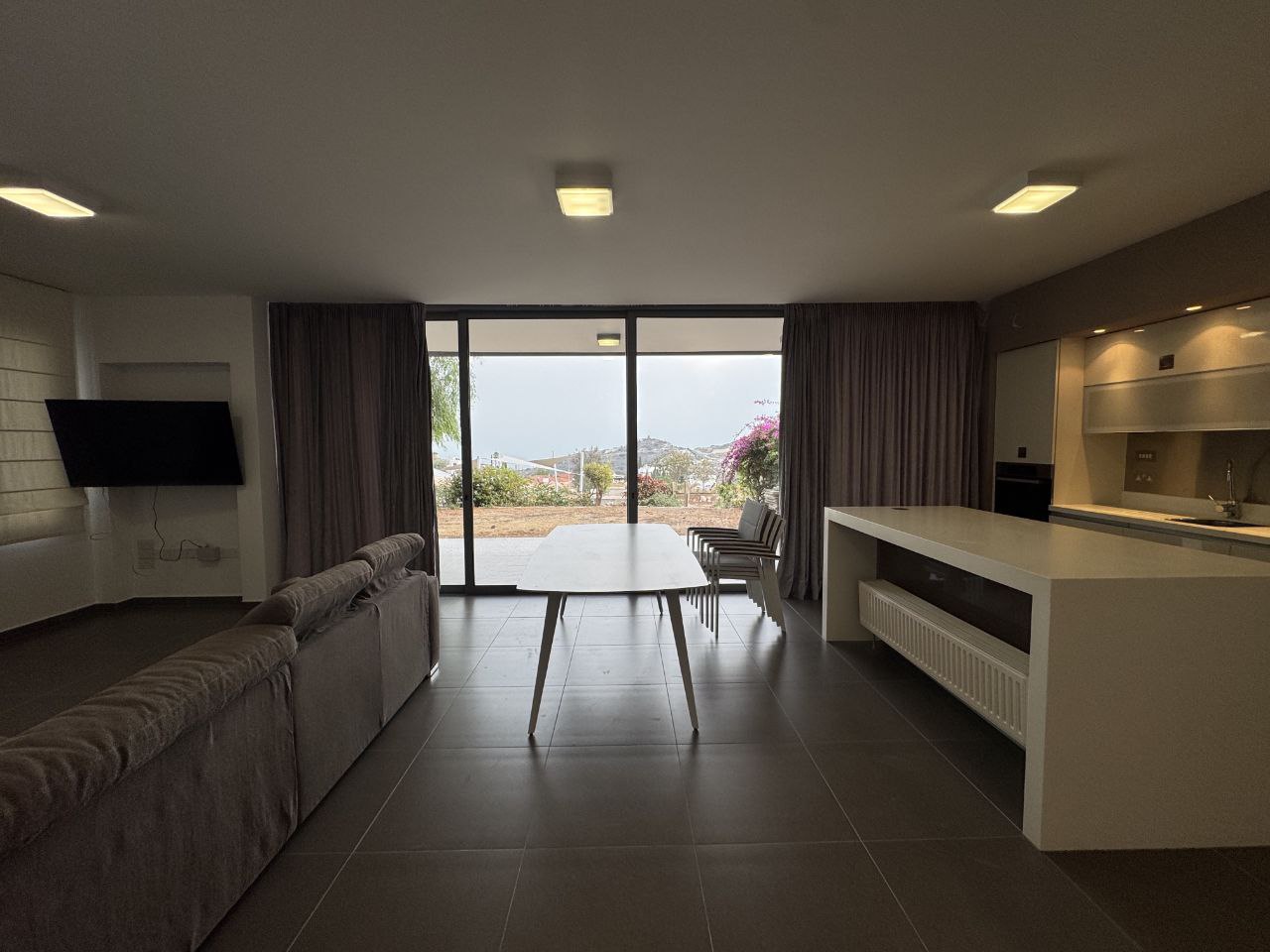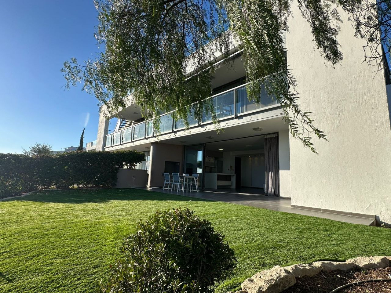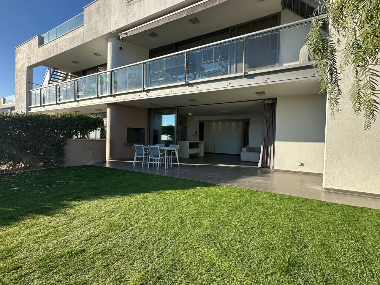 Two-bedroom apartment of 130 m2 for rent in the area of Agios Tychonas, Limassol. The apartment includes 2 bedrooms, 2 bathrooms with showers, a kitchen, a living room, a pantry/laundry room next to the kitchen, game rooms, balconies and a private garden of 150 m2. The apartment is fully furnished and equipped with Miele appliances, air conditioners are installed in all rooms, an alarm system, as well as a covered parking space and a separate storage room. The apartment is located on the ground floor. The residence is just a 10-minute walk from the beach next to the Amara Hotel, and the communal pool of the complex is located just 10 meters from the private garden. The property was built in 2012 and features beautiful views of the sea and mountains, as well as a high energy efficiency class A, which makes it comfortable to live in all year round.