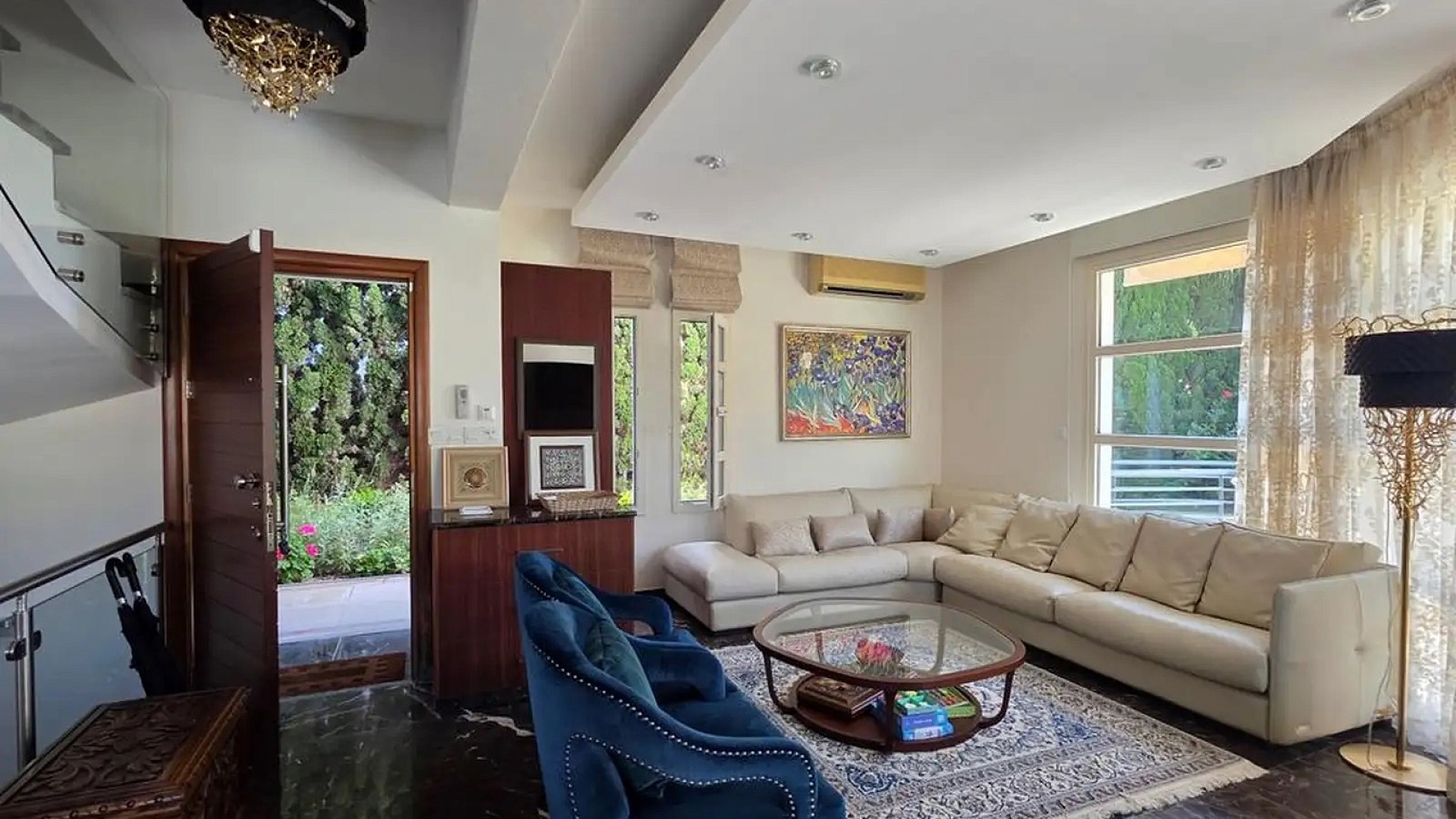 For rent a five-bedroom villa of 300 m2 in the area of Parekklisia, Limassol. The villa includes 5 bedrooms, 4 bathrooms, a guest toilet, a spacious living room, a separate fully equipped kitchen, balconies, a pantry and a well-maintained garden. The villa is located in a gated complex of four villas. The villa is fully furnished and equipped with household appliances, air conditioning system is installed in all rooms. The plot has a covered parking, a barbecue area and a communal infinity pool. Additionally, the property features panoramic views of the sea and the city, high ceilings, marble floors and is located in a quiet residential area within a secure complex. The property is located a few steps from Malindy Beach, just 1 km from restaurants and shops, with convenient access to the highway and approximately 49 km from Larnaca International Airport.