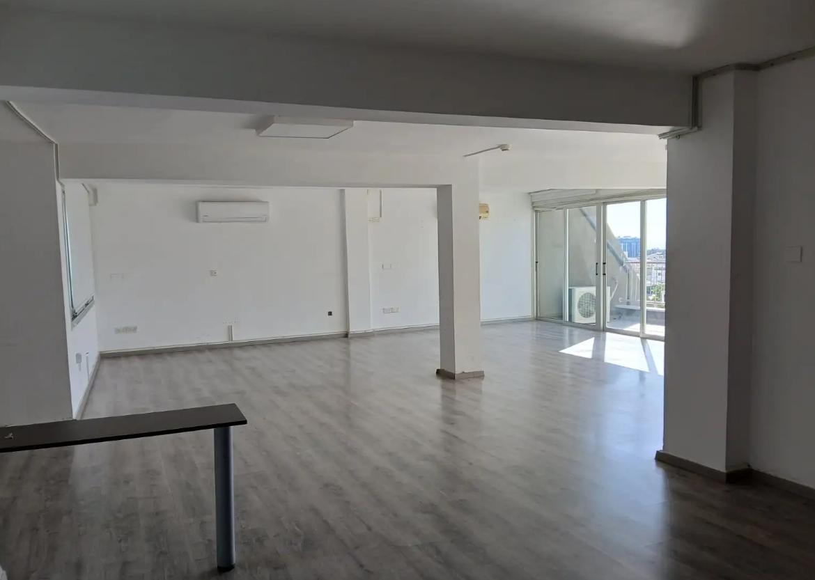 An office for rent in Limassol, which is an open space of 126 m2, located in the very center of the city. The office includes a large open-space space, a separate room suitable for a meeting room or a director's office, a small kitchen, a bathroom and a spacious veranda. The room has three air conditioners, an elevator and a balcony, the office has recently been renovated, and the building underwent renovation in 2023.