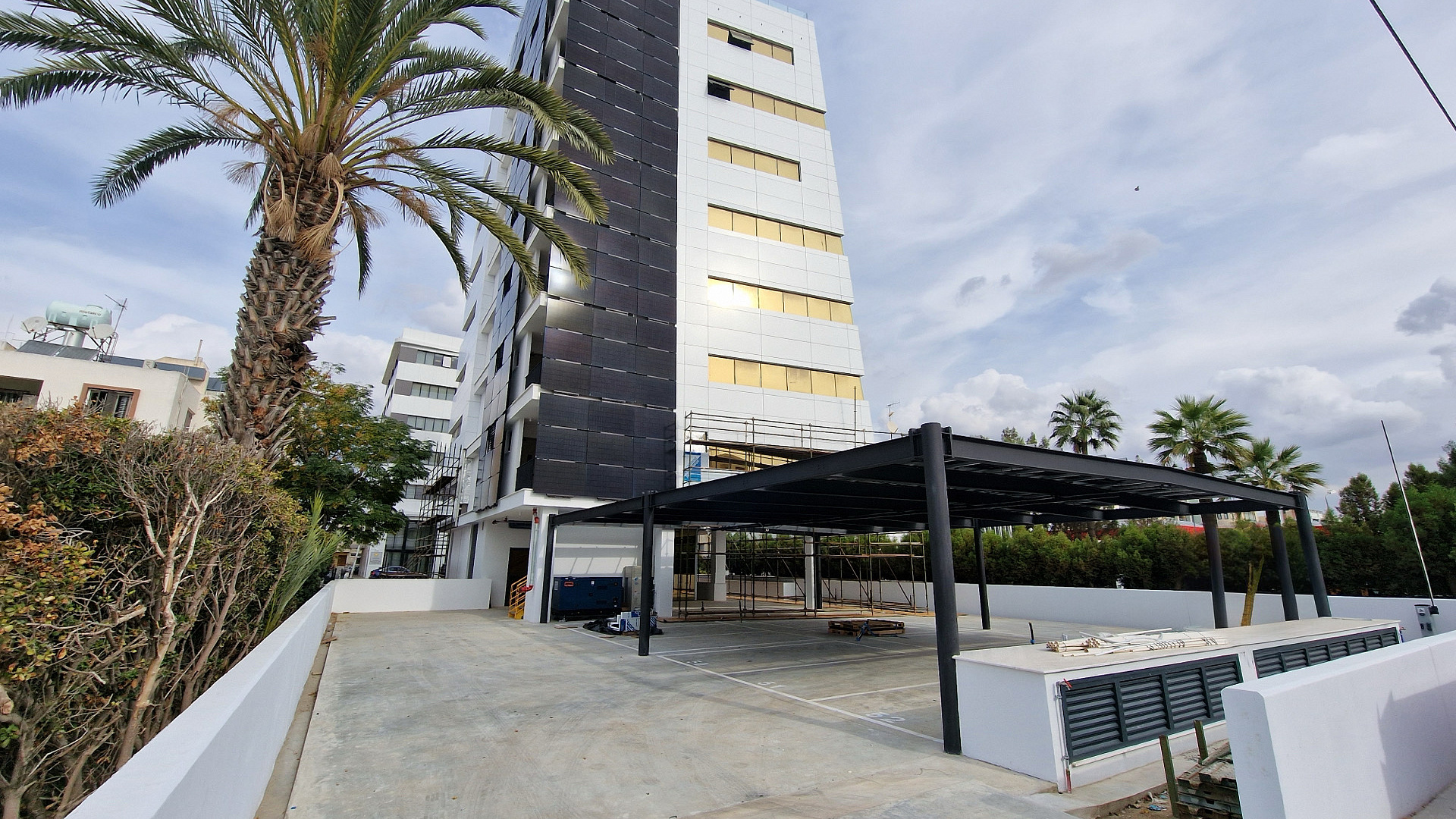 The entire 5th floor is for rent in a new office building in Strovolos, Nicosia. This unique building consists of seven office floors, two basement floors, 59 parking spaces and a terraced roof garden with a communal living room on the eighth floor. Each room in the building is designed to reduce environmental impact and energy consumption through the use of advanced methods, tools and solutions in the field of environmentally friendly construction in accordance with the latest standards in the field of environmental protection and sustainable development. An astute approach to open-plan design provides unparalleled flexibility, allowing each office space to be adapted to any unique requirements. The lobby on the ground floor and all office premises are equipped with a centralized DAIKIN VRV air conditioning system.