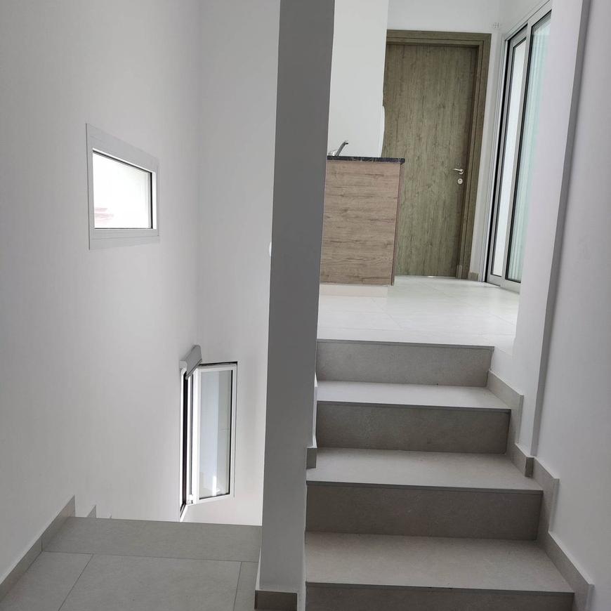 For rent a two-level, 2-bedroom apartment in a residential complex with a communal swimming pool. Furnished. Air conditioning in all rooms. Ground floor level: open-plan kitchen/living room, guest toilet and balcony. Second floor level: 2 large double bedrooms, a main bathroom, a laundry room and a spacious balcony. There is a covered parking space and a storage room. It is located in the Asomatos area.