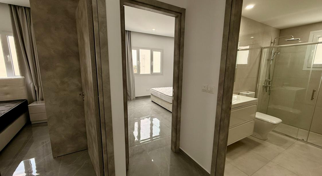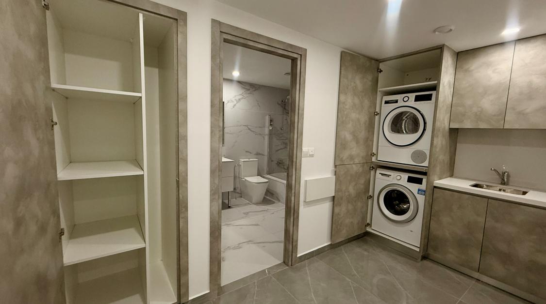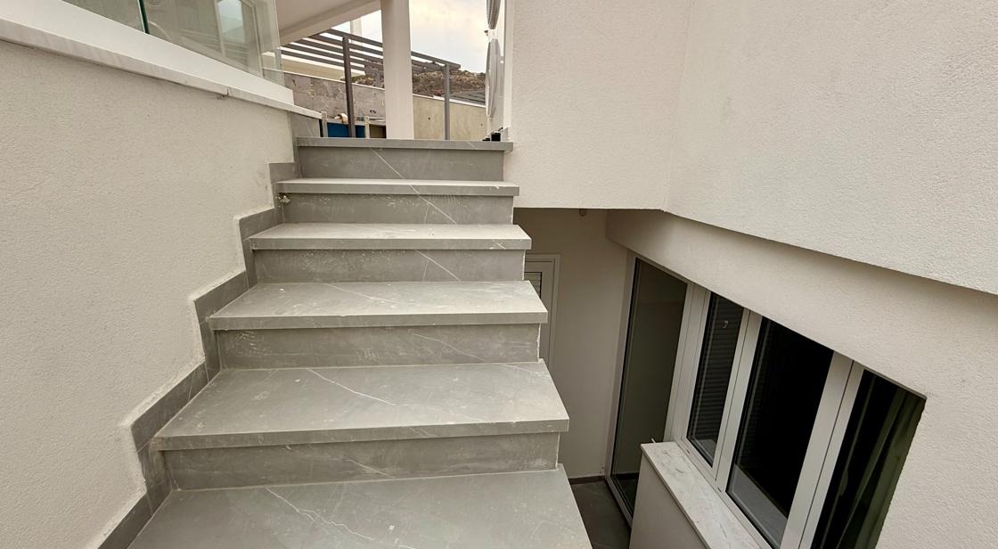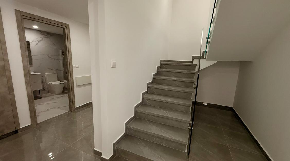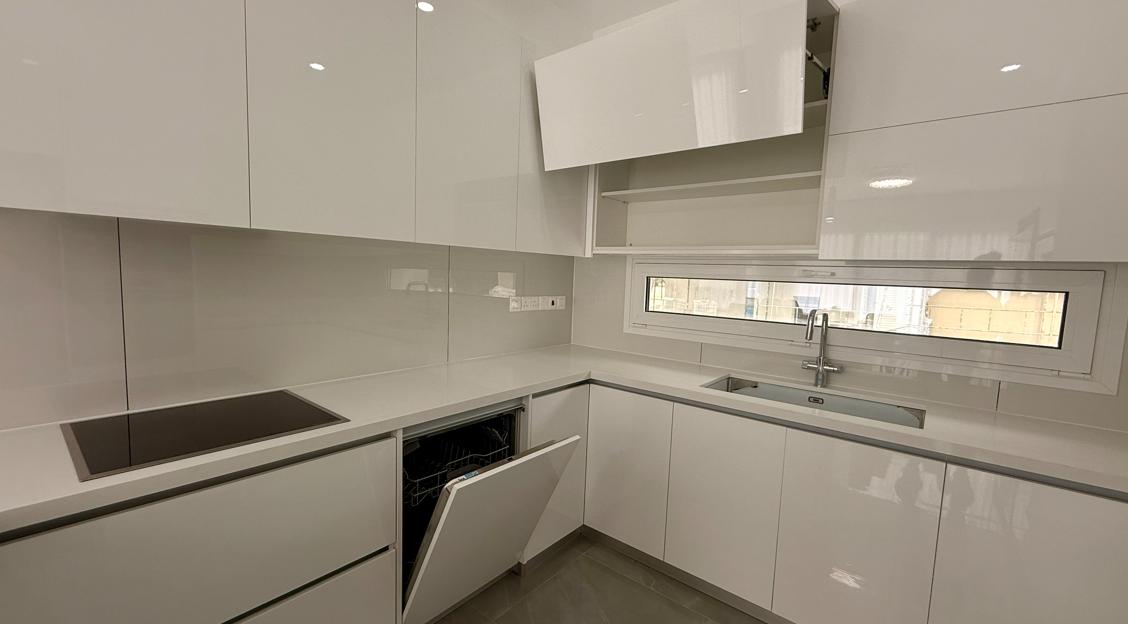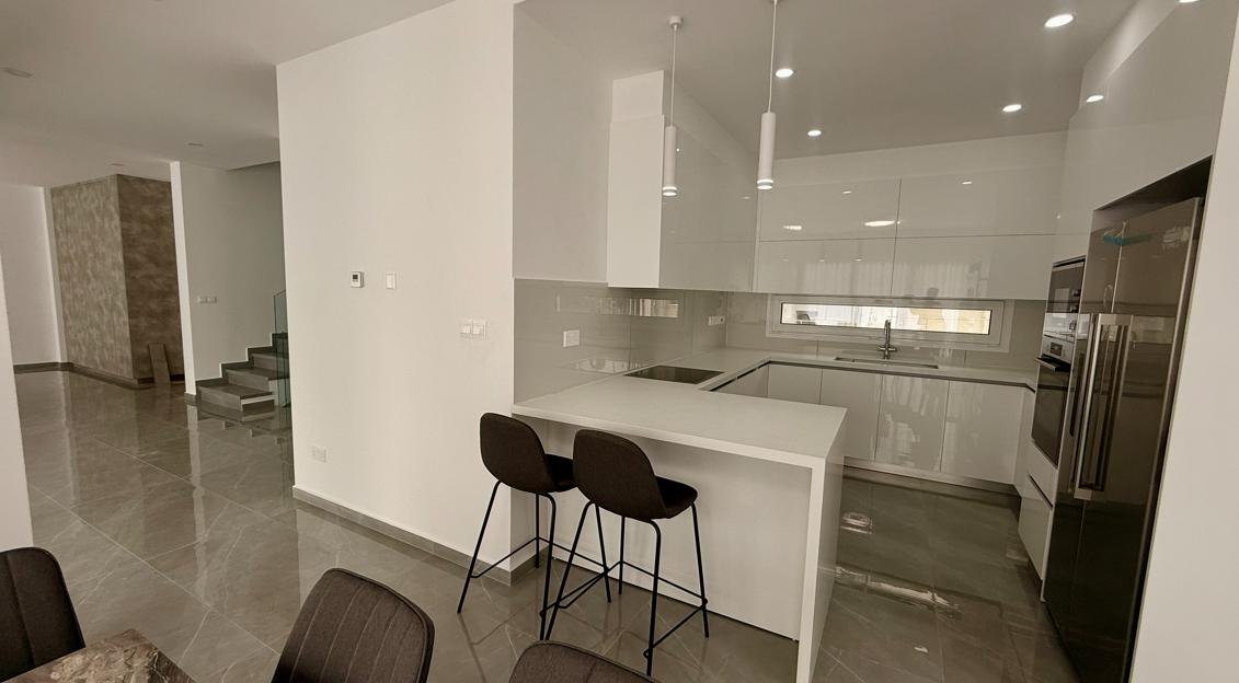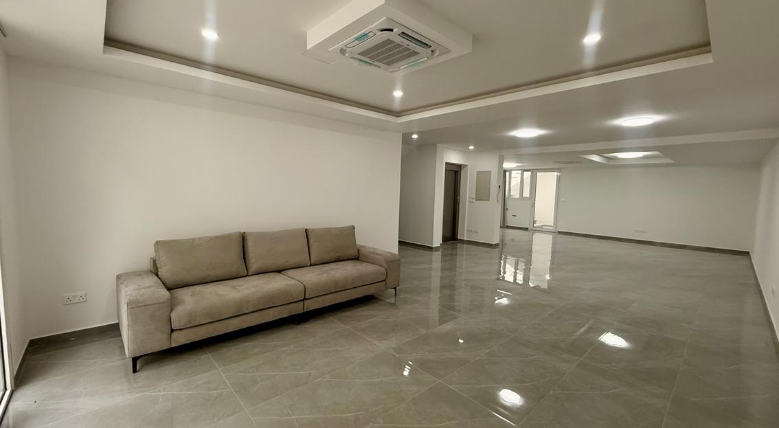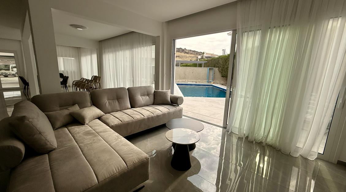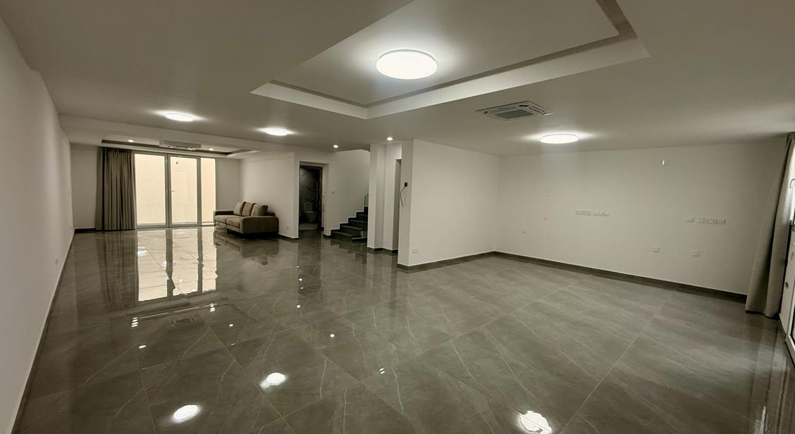 This 350 sq m, five-bedroom villa on a 550 sq m plot is for rent in Agios Tychonas, Limassol. The ground floor features a spacious living room, kitchen, and guest toilet. The approximately 100 sq m basement features a spacious living room with a separate entrance from the street, a laundry room, and a bathroom with a toilet, bathtub, and shower. The second floor features 34 bedrooms, 4 bathrooms (3 en-suite), and a balcony. The third floor features a fifth bedroom with an en-suite bathroom and a spacious terrace with the option of installing a jacuzzi. The property features an elevator, all necessary appliances, a 10 kW underfloor heating system, blackout blinds, and solar panels. The courtyard features a swimming pool with a wave system and a double side-by-side garage. The property is located in a private gated complex, offering a high level of privacy and easy access to the area's amenities.