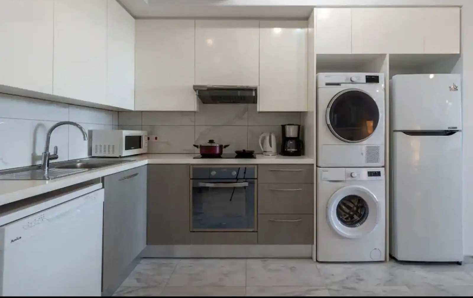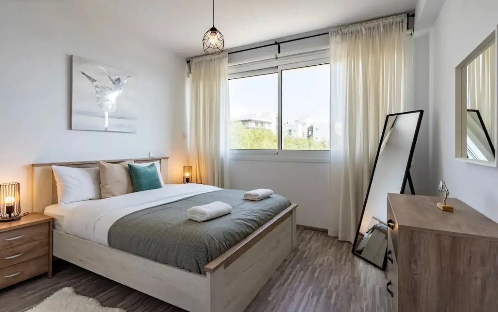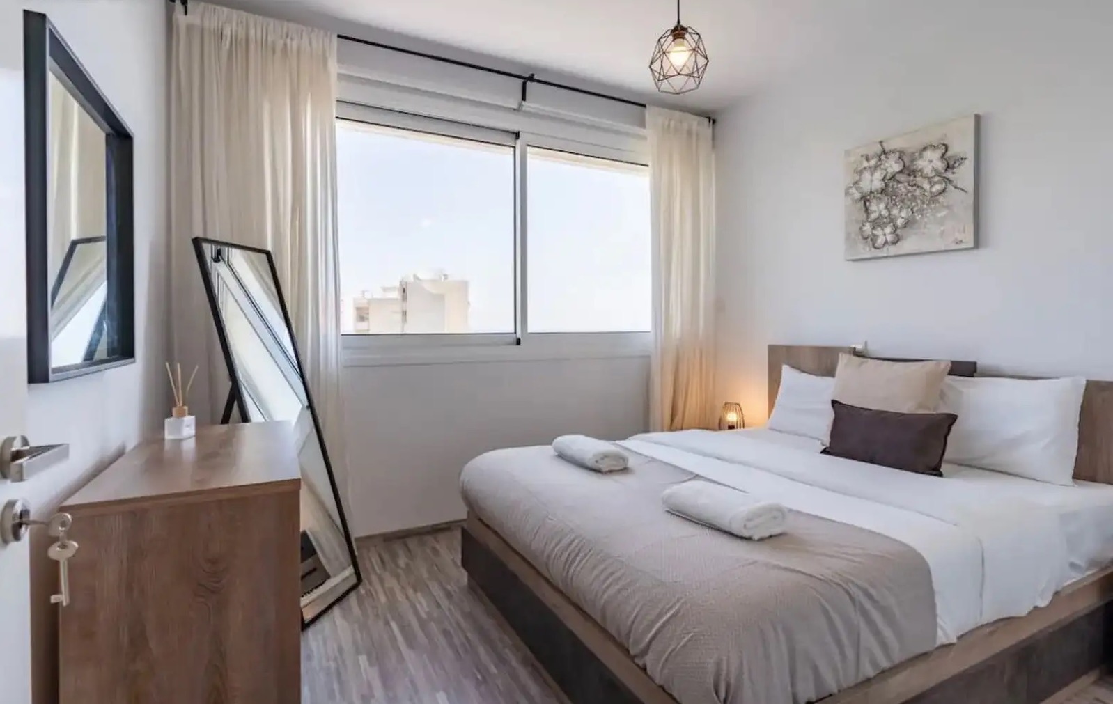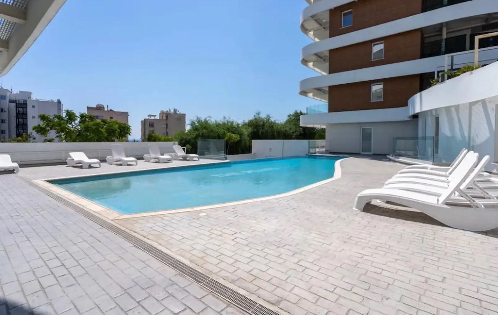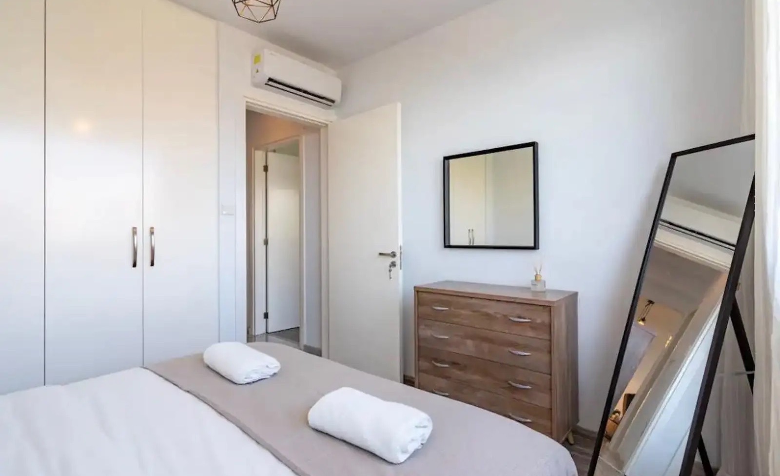 Two-bedroom apartment of 98 m2 for rent in Mackenzie, Larnaca. The apartment includes two bedrooms (one with its own bathroom), two bathrooms, a kitchen, a living room, a balcony and a storage room. The apartment is located on the 1st floor. The property is fully furnished and equipped with household appliances, air conditioners are installed in all rooms. The complex has a swimming pool, elevator, covered parking, and a separate storage room. The building was built in 2019 and has a high energy efficiency class A. The residence is located in a prestigious area, in close proximity to the beach, which provides direct access to the sea and the promenade area.