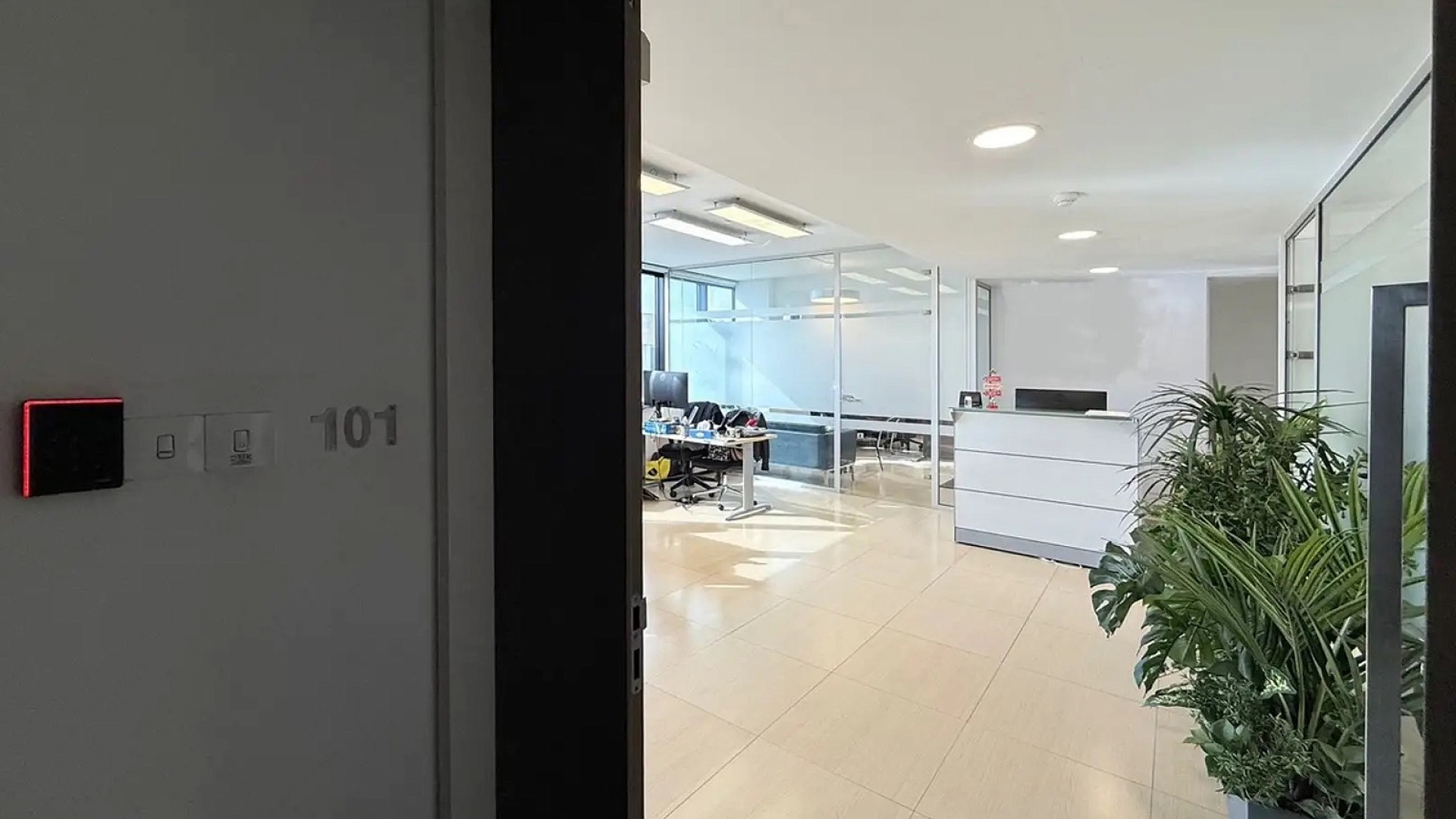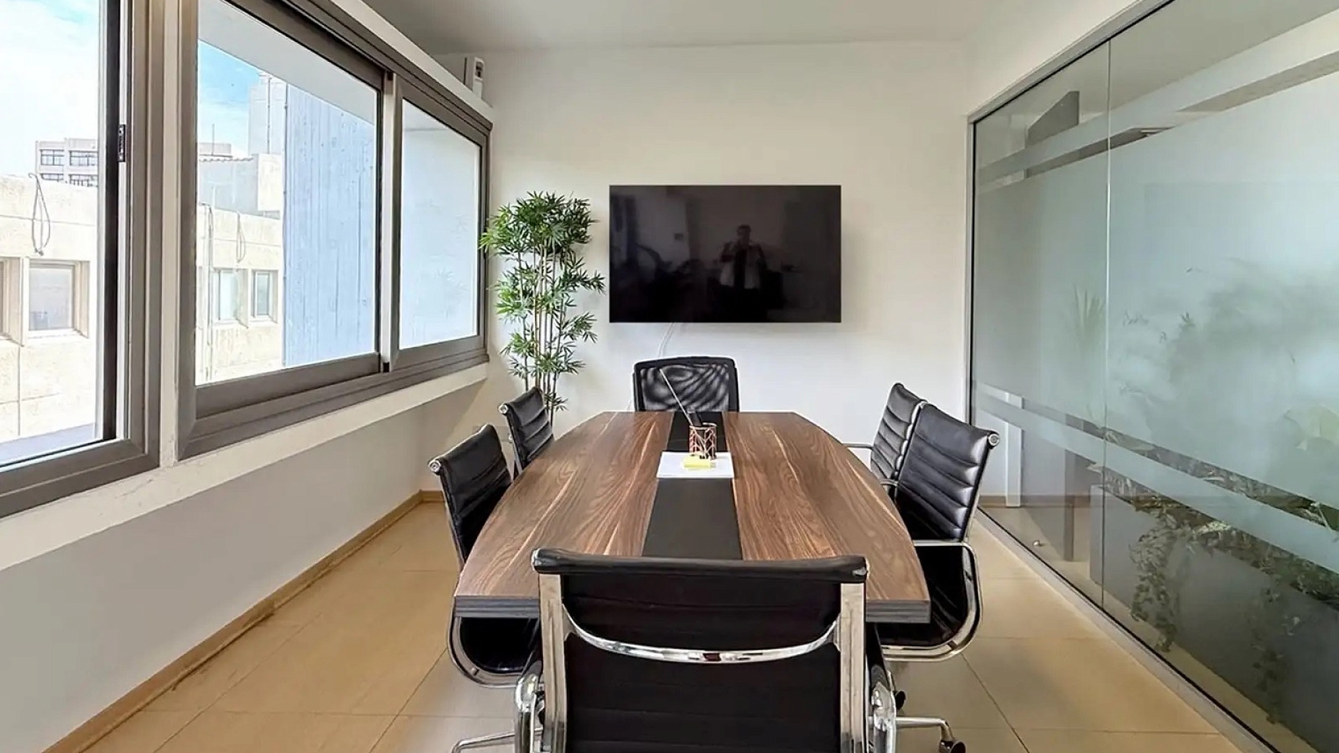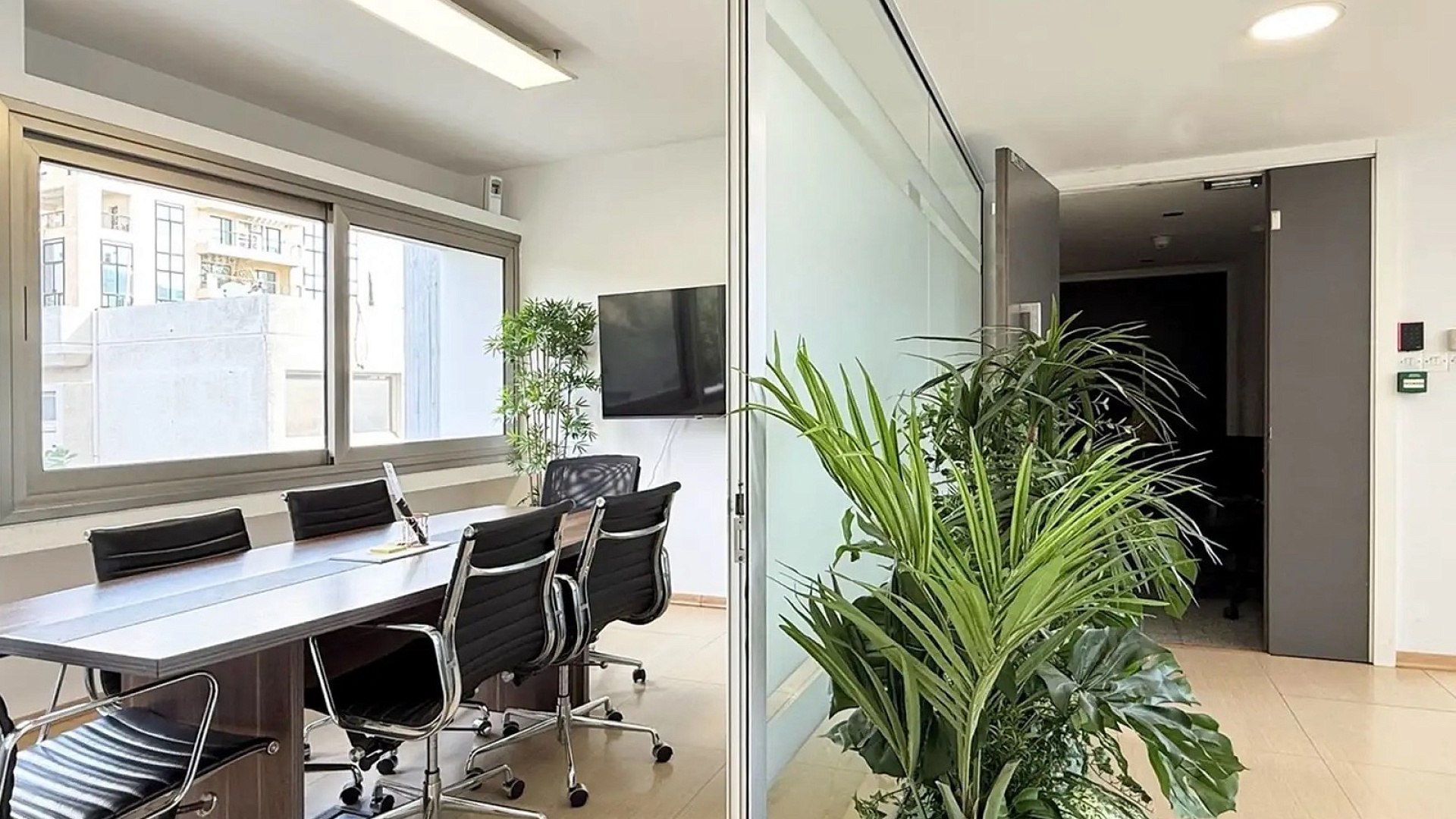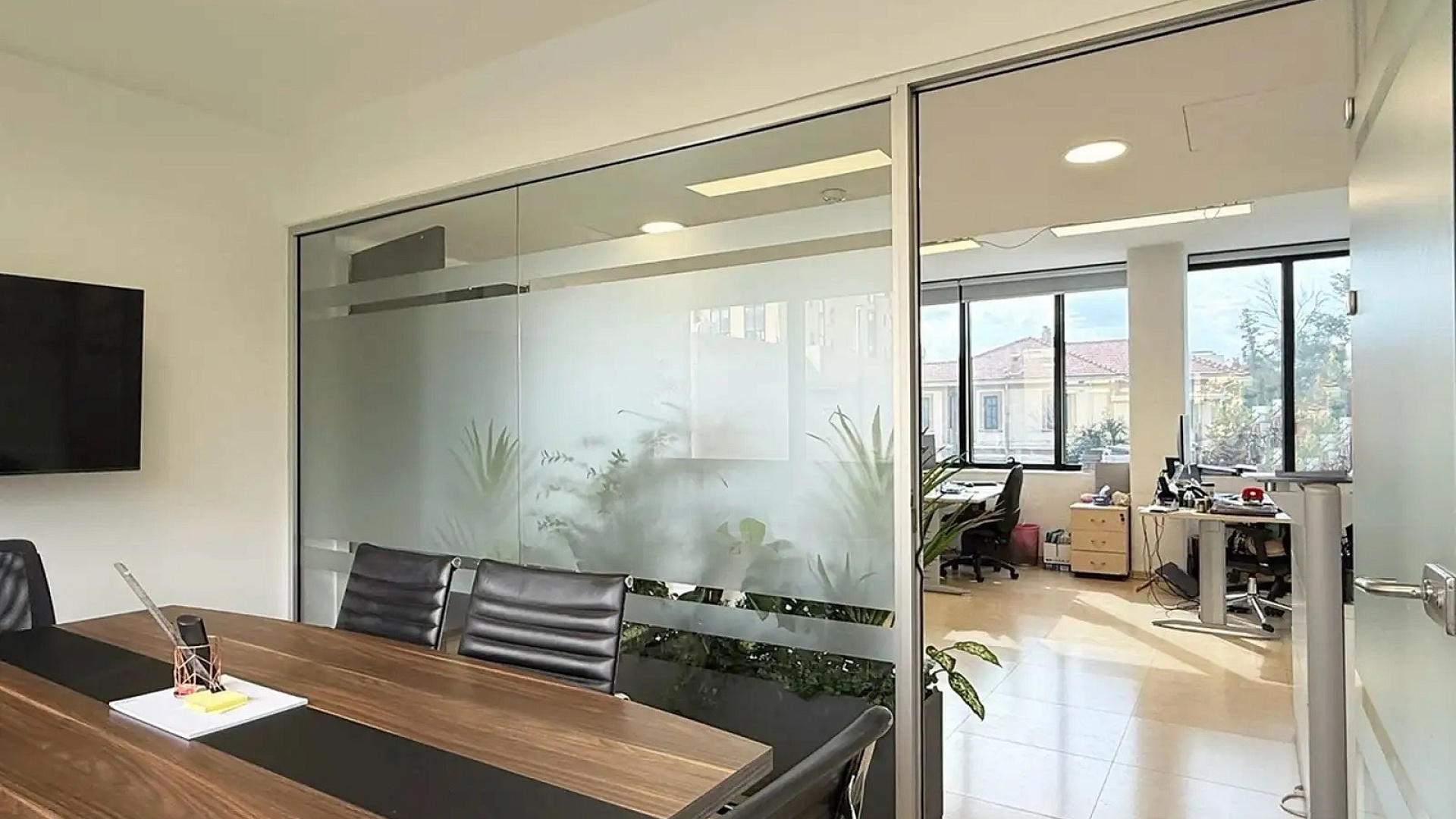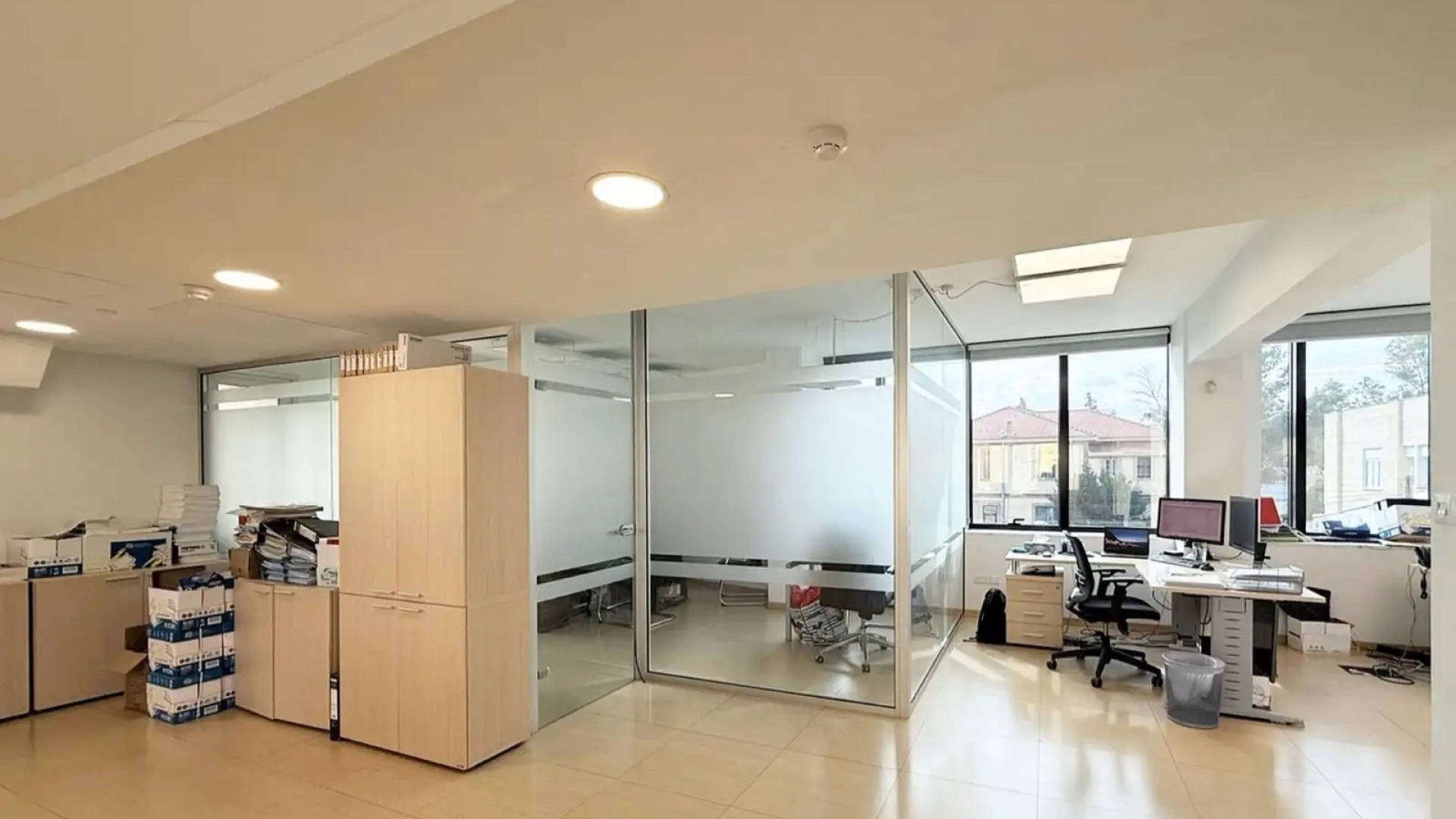 An office of 200 m2 for rent in the area of Agioi Omologites, Nicosia. The office space includes two spacious open work rooms, two separate offices, a dedicated conference area, a small kitchen for staff and two bathrooms. The office includes three parking spaces; an elevator and an alarm system are also provided. The premises are located just a few steps from Themistokli Dervi, in the center of the business district of the capital, which provides excellent visibility, convenient access and proximity to the entire urban infrastructure. The office is equipped with a VRV system and has a raised floor for flexible placement of cable networks. Additionally, the office has plenty of natural light and views of the city.