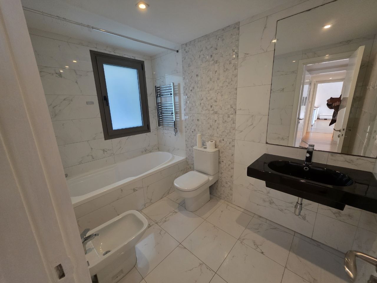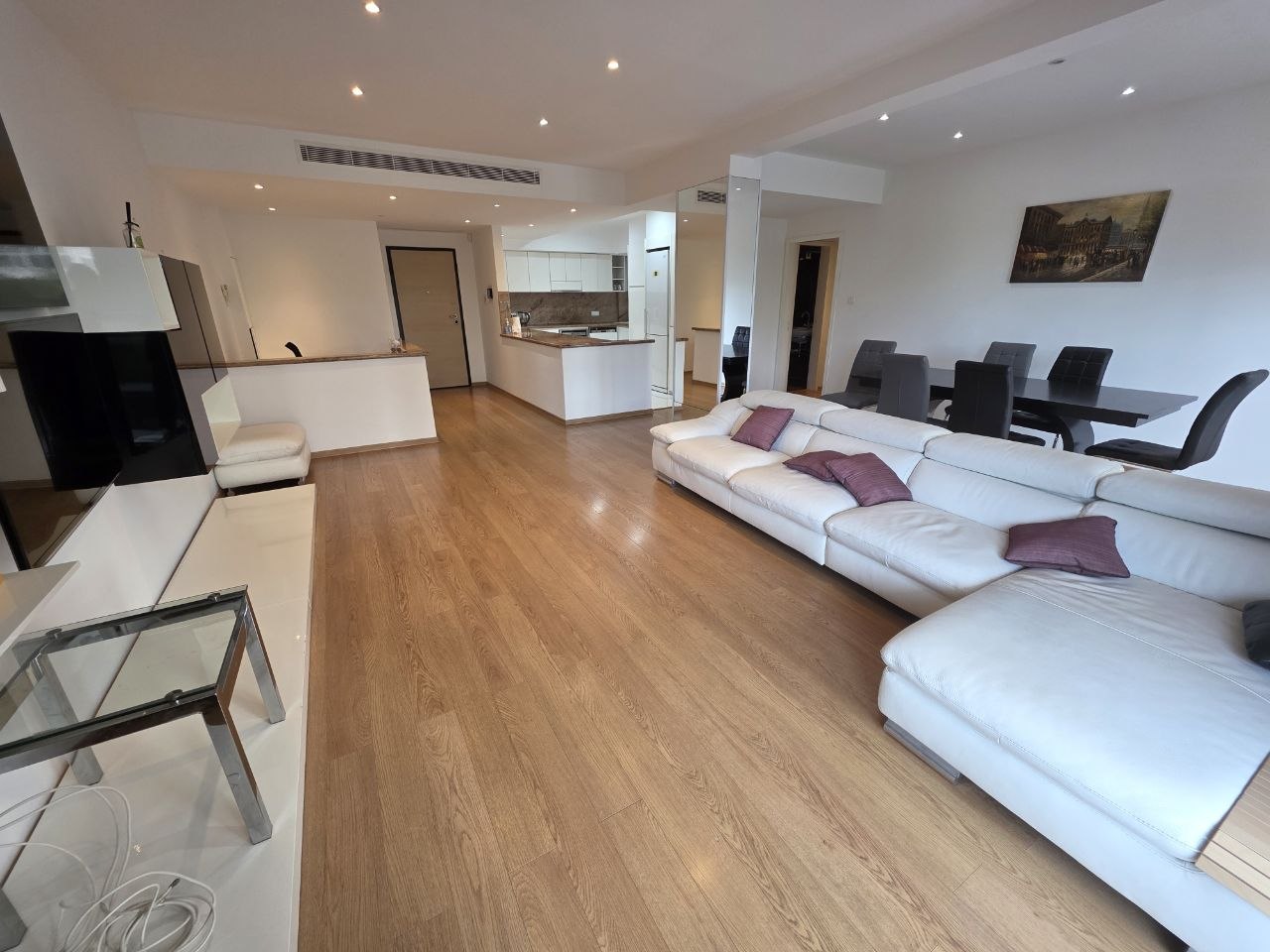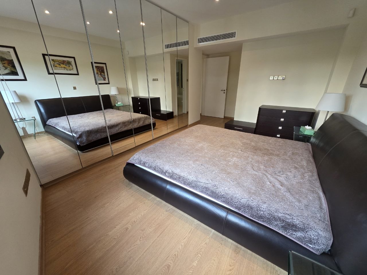 A 3-bedroom apartment is available for rent on the first beachfront line in the Potamos Germasogeia tourist area, Limassol, located on the 1st floor. The apartment has an area of 150 m² and includes 3 bedrooms, 2 bathrooms, a living room, dining area, and a modern kitchen with a sea-view balcony. The lighting is adjustable LED, and the VRV air conditioning system provides hot and cold air in all rooms. The apartment is equipped with an alarm system, CCTV cameras, and a video intercom. The windows are double-glazed with aluminum shutters. The building features a 20-meter pool by the beach. There is a covered parking space, 50Gbps internet, Cat5 network, and TV cabling in all rooms. Pets are not allowed.