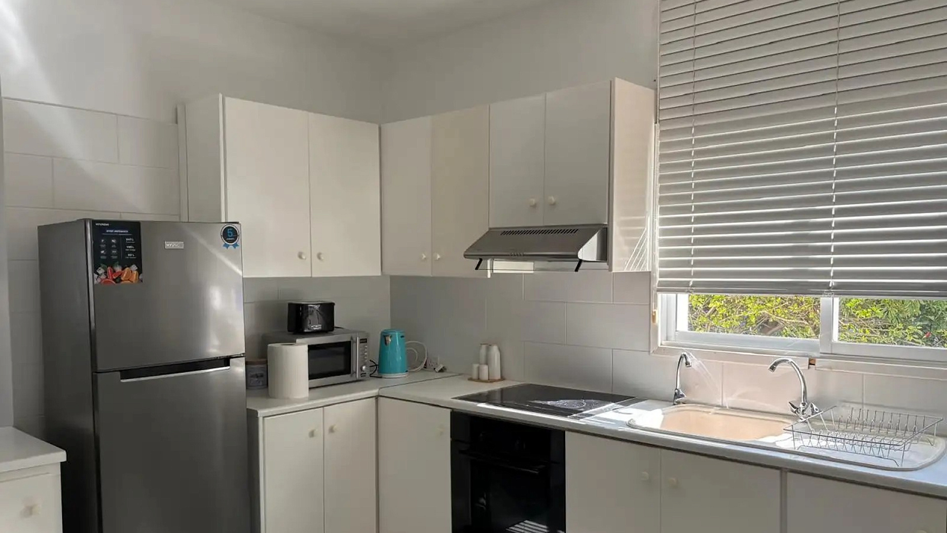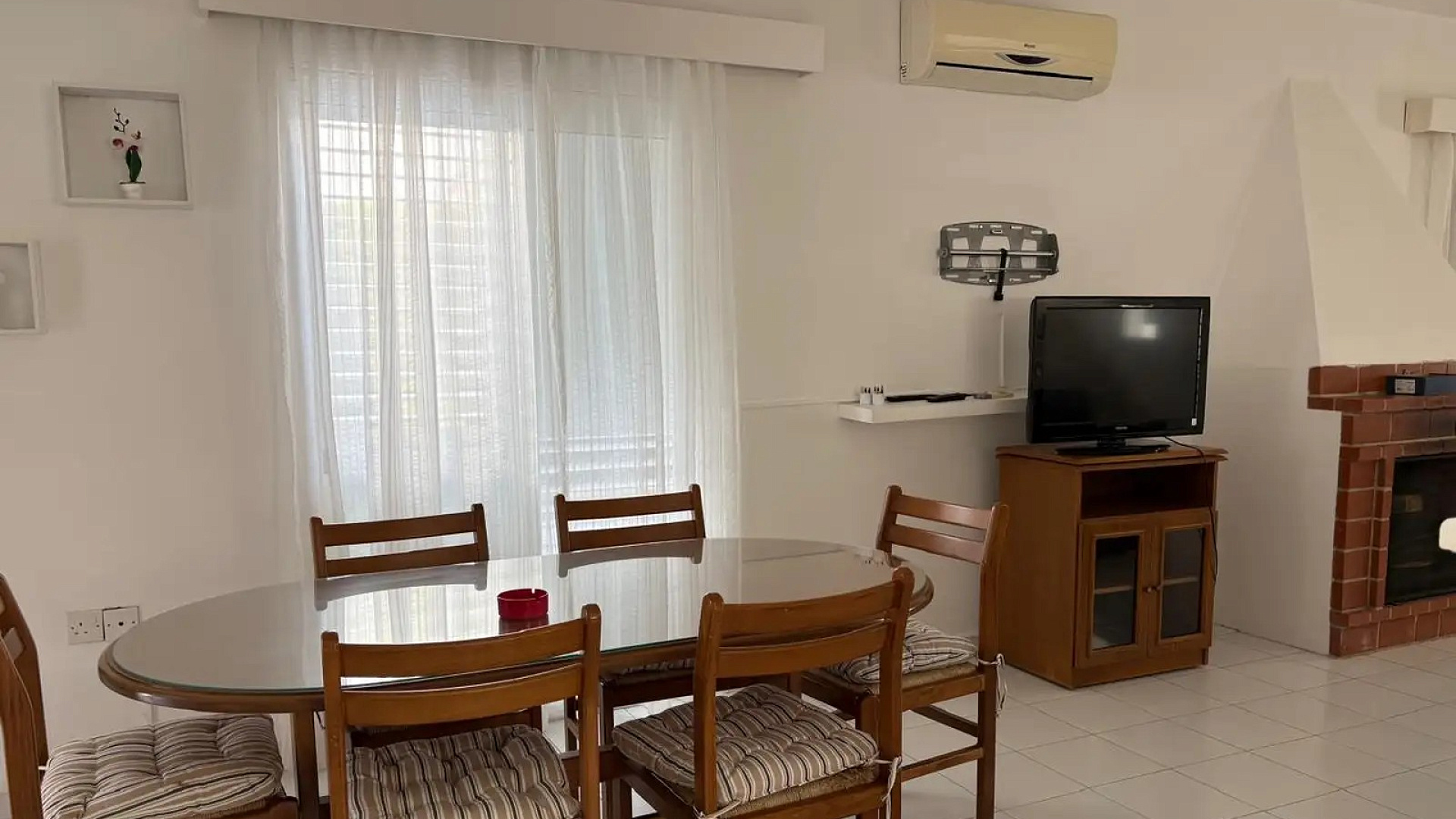 Three-bedroom villa of 150 m2 for rent in Protaras, Famagusta. The villa includes a spacious open living room with a dining area and a kitchen, 3 bedrooms, 2 bathrooms, a fireplace, large tiled terraces, a pergola, a barbecue area, an outdoor shower and a garden. The villa is fully furnished and equipped with all necessary household appliances and kitchen utensils. Each room has air conditioning. The apartment is located on the site of a private complex of 8 villas with a paved driveway and a total area of, within walking distance of about 100 m from the beach between Green Bay and Cavo Maris. Parking for 2 cars is provided on site. The villa is designed in Greek style with white architecture and neat interior, offers high quality construction and is ready to move in for both short and long term.