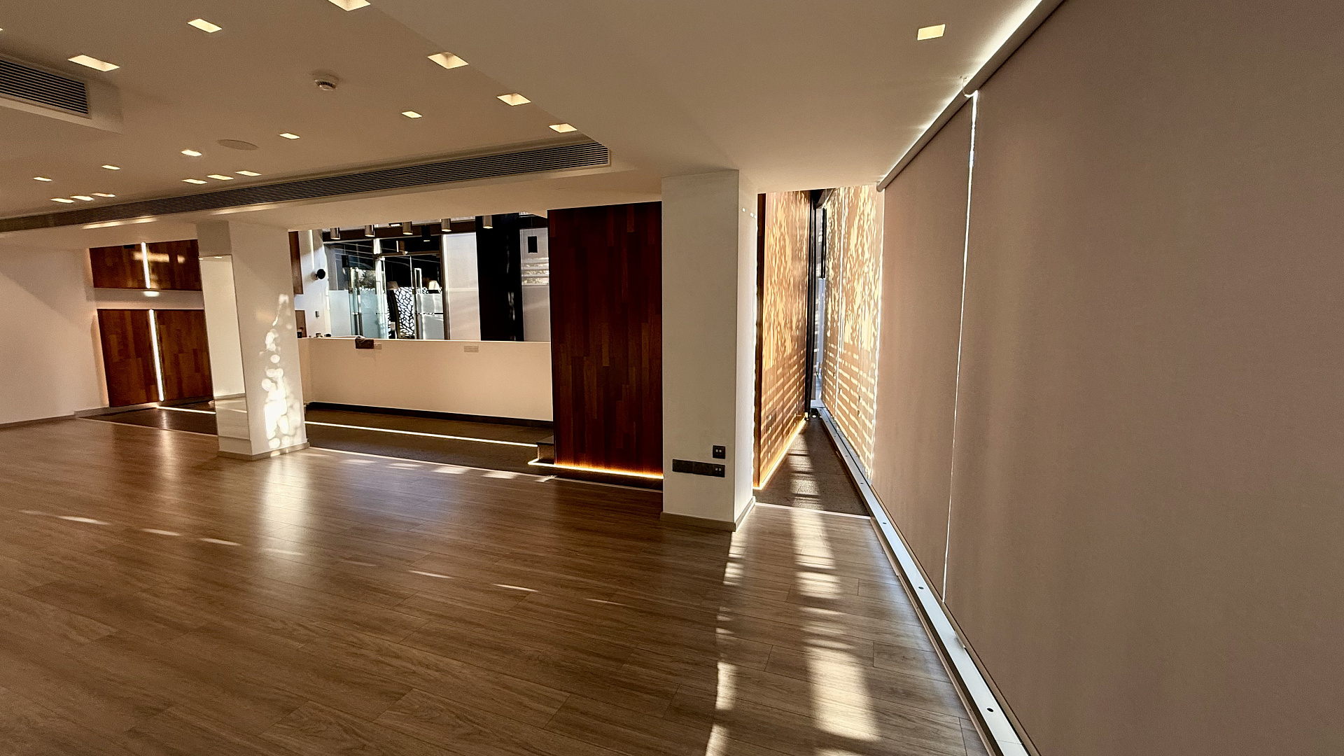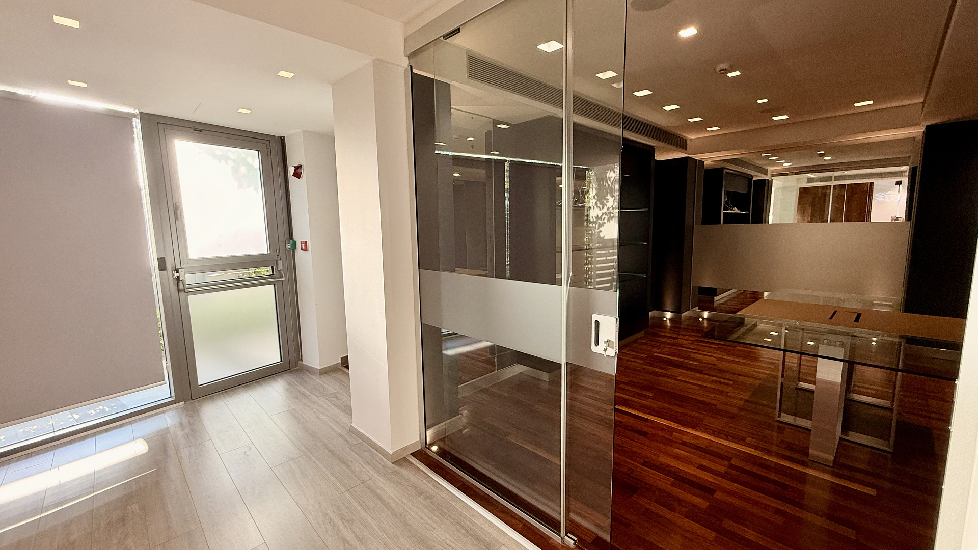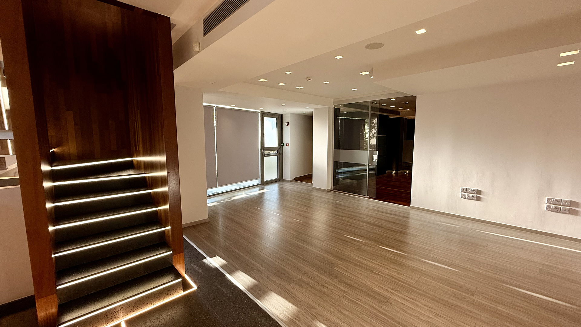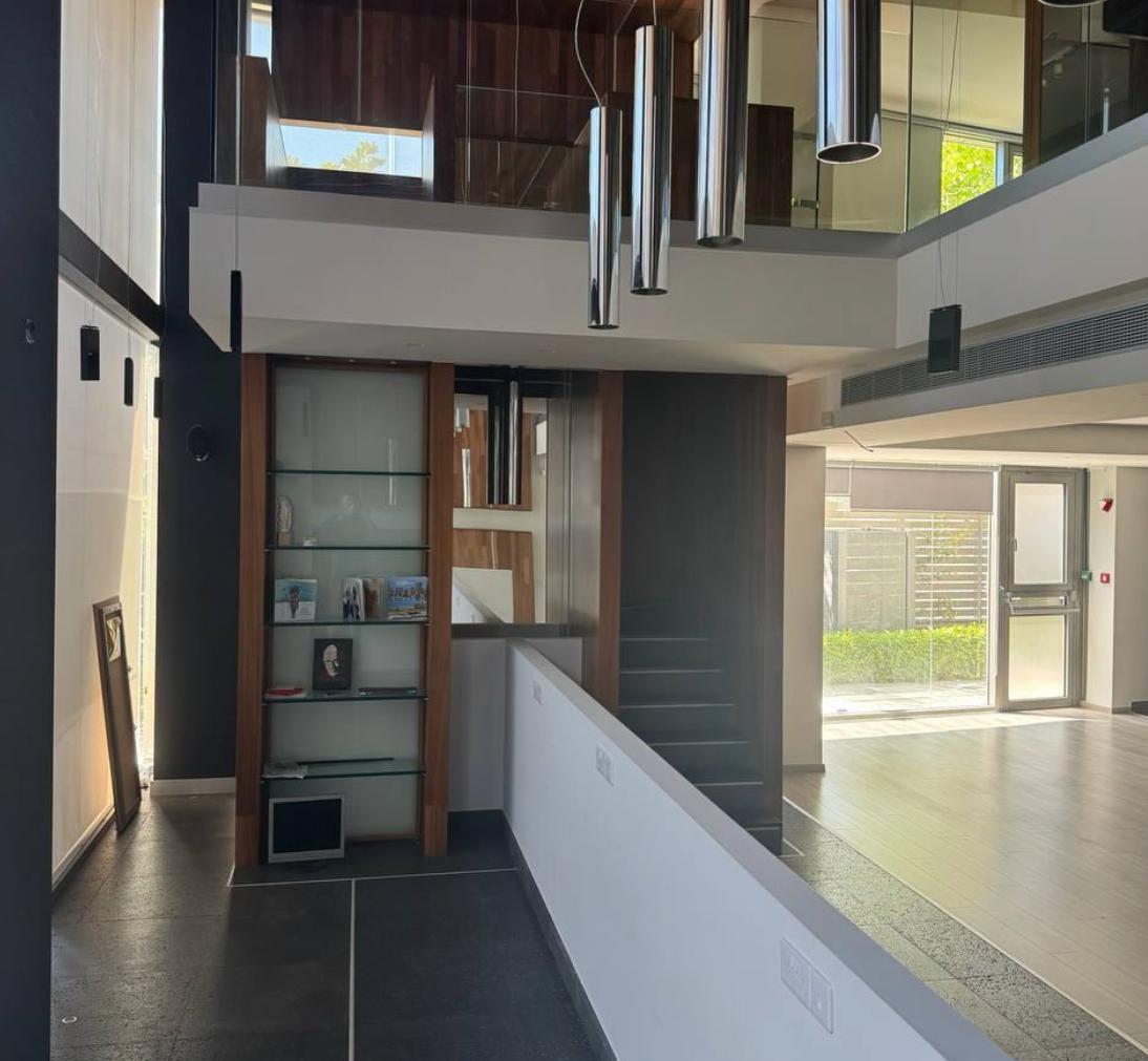 Modern commercial premises for rent in the area of Agios Tychonas, Limassol, fully finished, located on two levels: a lower floor of 122 m2 and a mezzanine of 80 m2, with a total area of 208 m2. The space is decorated in bright colors, high ceilings and panoramic glazing create maximum natural light, and wooden ceiling panels, glass mezzanine railings and built-in lighting form a representative interior. The room is ready for immediate use, there are areas for reception and workplaces. The facility includes three parking spaces. The room is located in a modern landmark building on the seafront in the Agios Tychonas area of Limassol. The location is located along Amathuntos Avenue and is characterized by high visibility, convenient access and proximity to the sea, which makes the room suitable for an executive office, showroom or flagship division of the company.