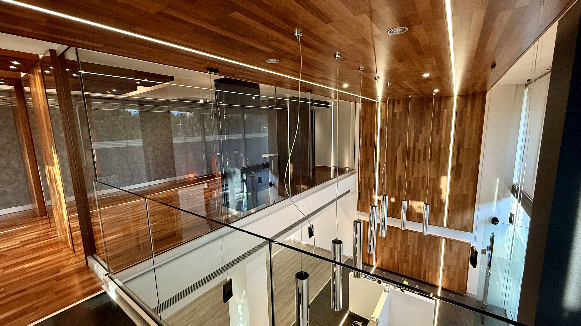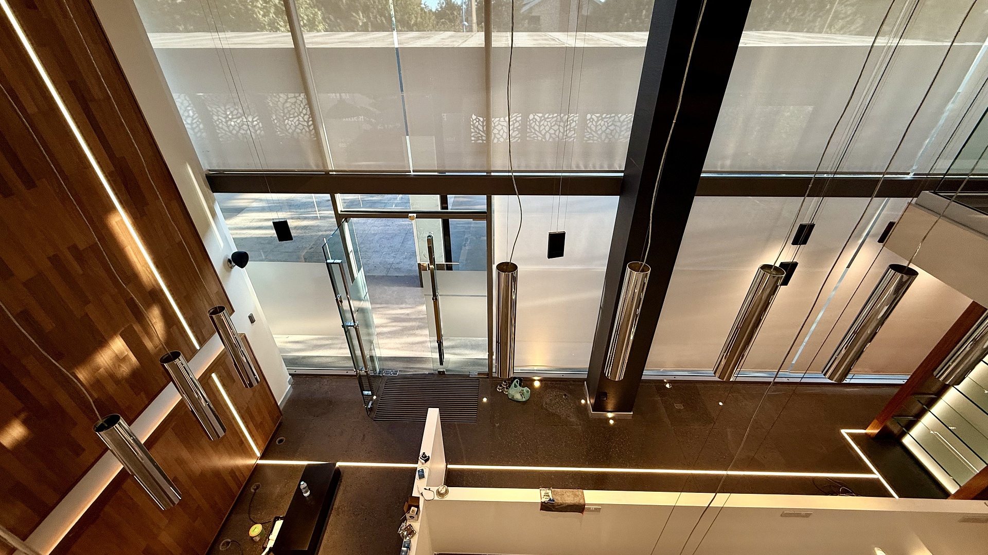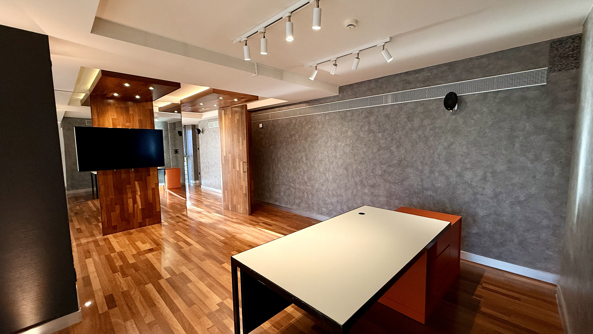 Modern commercial premises for rent in the area of Agios Tychonas, Limassol, fully finished, located on two levels: a lower floor of 122 m2 and a mezzanine of 80 m2, with a total area of 208 m2. The space is decorated in bright colors, high ceilings and panoramic glazing create maximum natural light, and wooden ceiling panels, glass mezzanine railings and built-in lighting form a representative interior. The room is ready for immediate use, there are areas for reception and workplaces. The facility includes three parking spaces. The room is located in a modern landmark building on the seafront in the Agios Tychonas area of Limassol. The location is located along Amathuntos Avenue and is characterized by high visibility, convenient access and proximity to the sea, which makes the room suitable for an executive office, showroom or flagship division of the company.