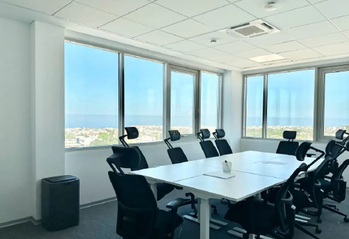 Office for rent in Kato Paphos district, Paphos city, with an area of 600m2, new building in 2024 with high energy efficiency A+. The room is a modern and comfortable commercial space with large windows and good visibility, suitable for a company office, consulting center or other professional services. The office has two bathrooms, an equipped kitchen, air conditioners in all rooms, electric heating and double windows. The building is equipped with an alarm system, video surveillance and fire protection systems, and one underground parking space is provided. The angular location provides good views and convenient access.
