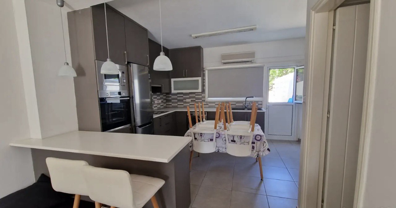 For rent fully furnished and renovated 2-room house (maisonette) of 118 m2 with 2 bedrooms in the area of Oroklini, Larnaca. The house has a modern design, there is a small garden in front and back of the house. The house is equipped with air conditioners. There is also 1 bathroom, 2 toilets, and a balcony. The accommodation is only a 5-minute drive from the nearest beach. Pets are not allowed.