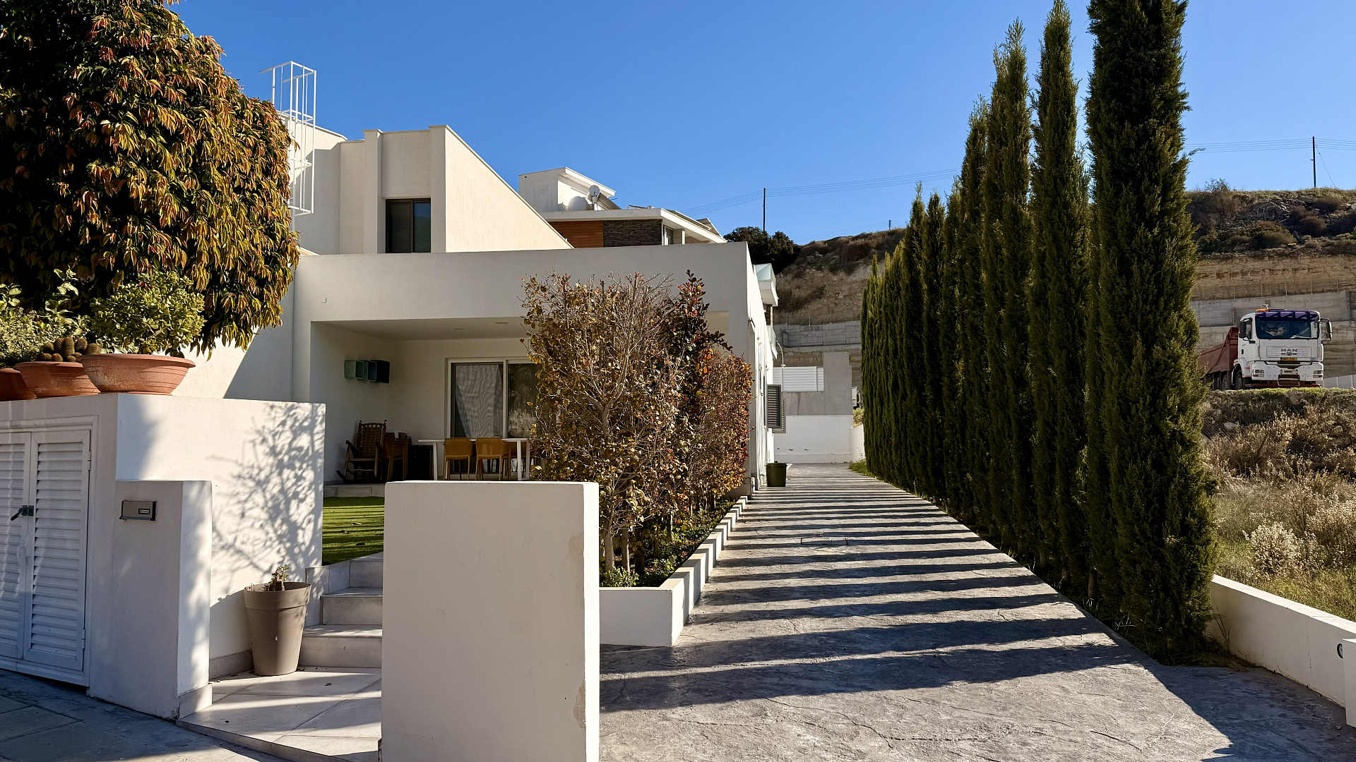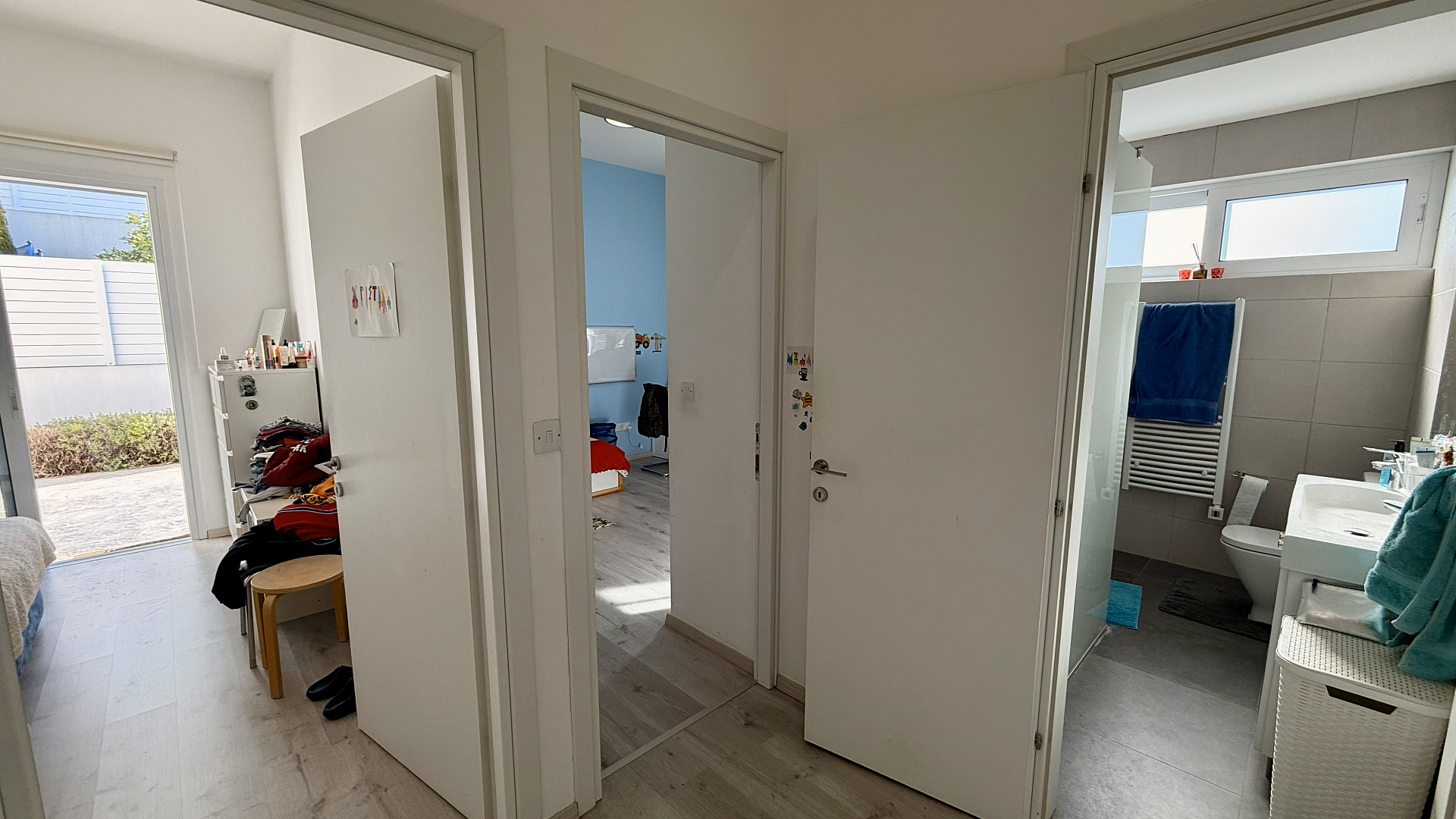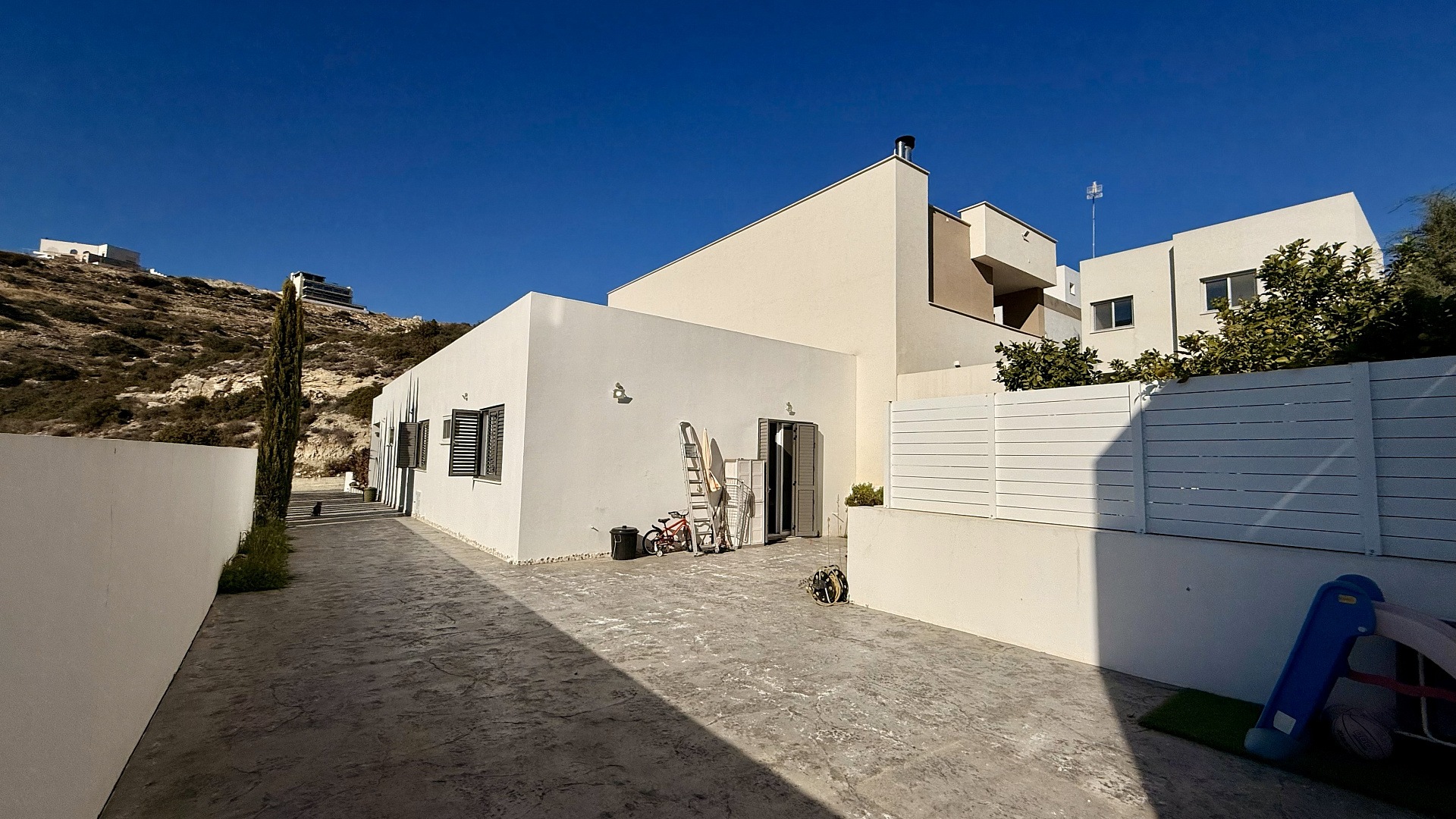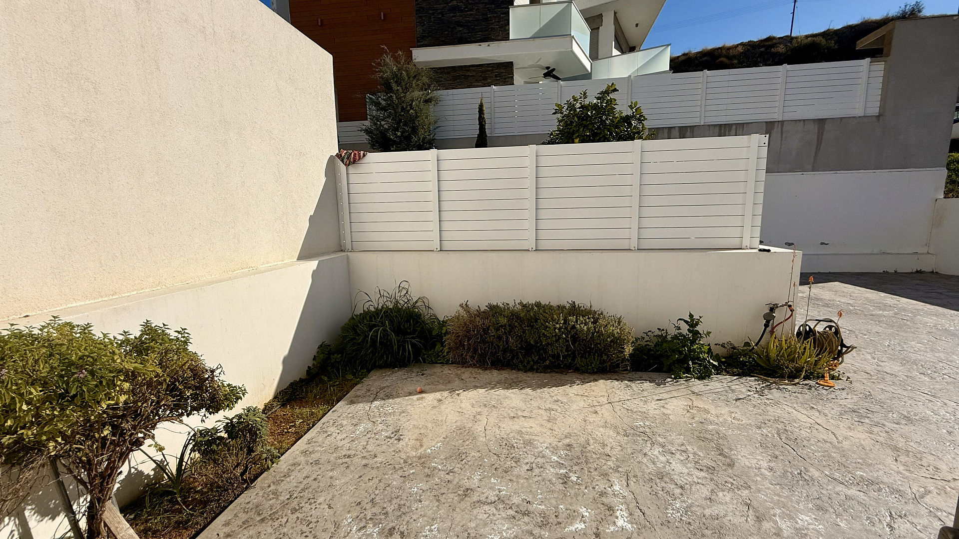 Semi-detached three-bedroom house for rent in Agios Athanasios Limassol, located in a quiet area of Panthea near schools, parks, shops and a few minutes from the Mesa Geitonia interchange. The house was built in 2021, has a covered area of 152 m2 and a plot of 435 m2 with a large private garden, is fully furnished and suitable for living with animals. The layout includes a bright living room with high ceilings, three comfortable air-conditioned bedrooms, two bathrooms, a storage room and balconies. The house is equipped with air conditioning in all rooms, energy-efficient BEHA electric heaters, shutters on the windows, laminate floors and a built-in speaker system on the veranda, kitchen and living room.