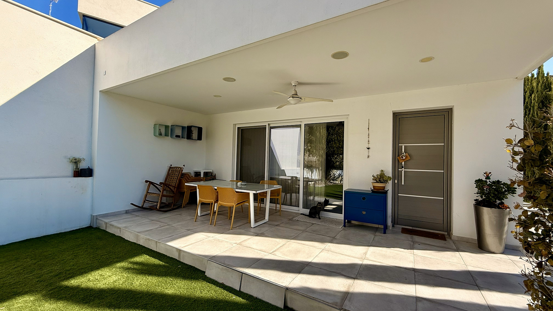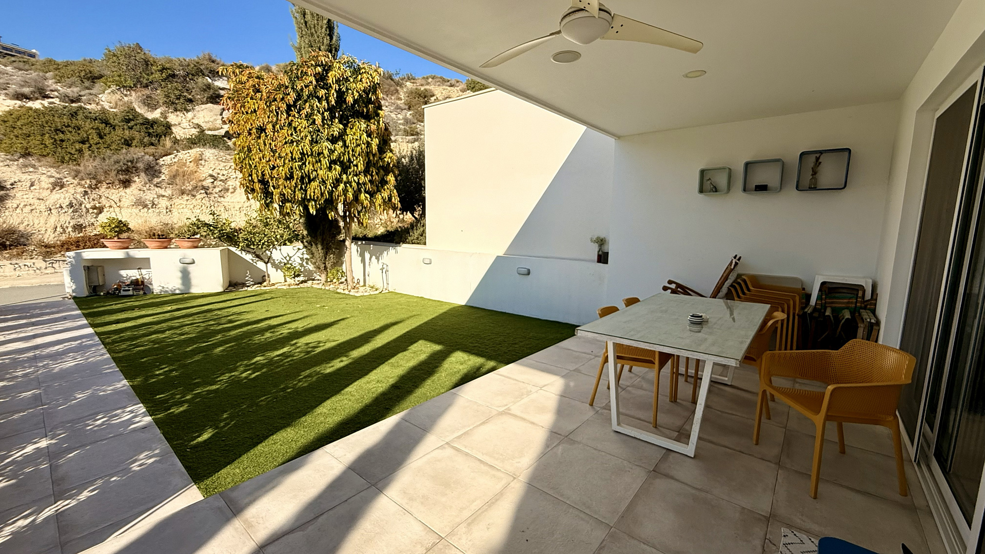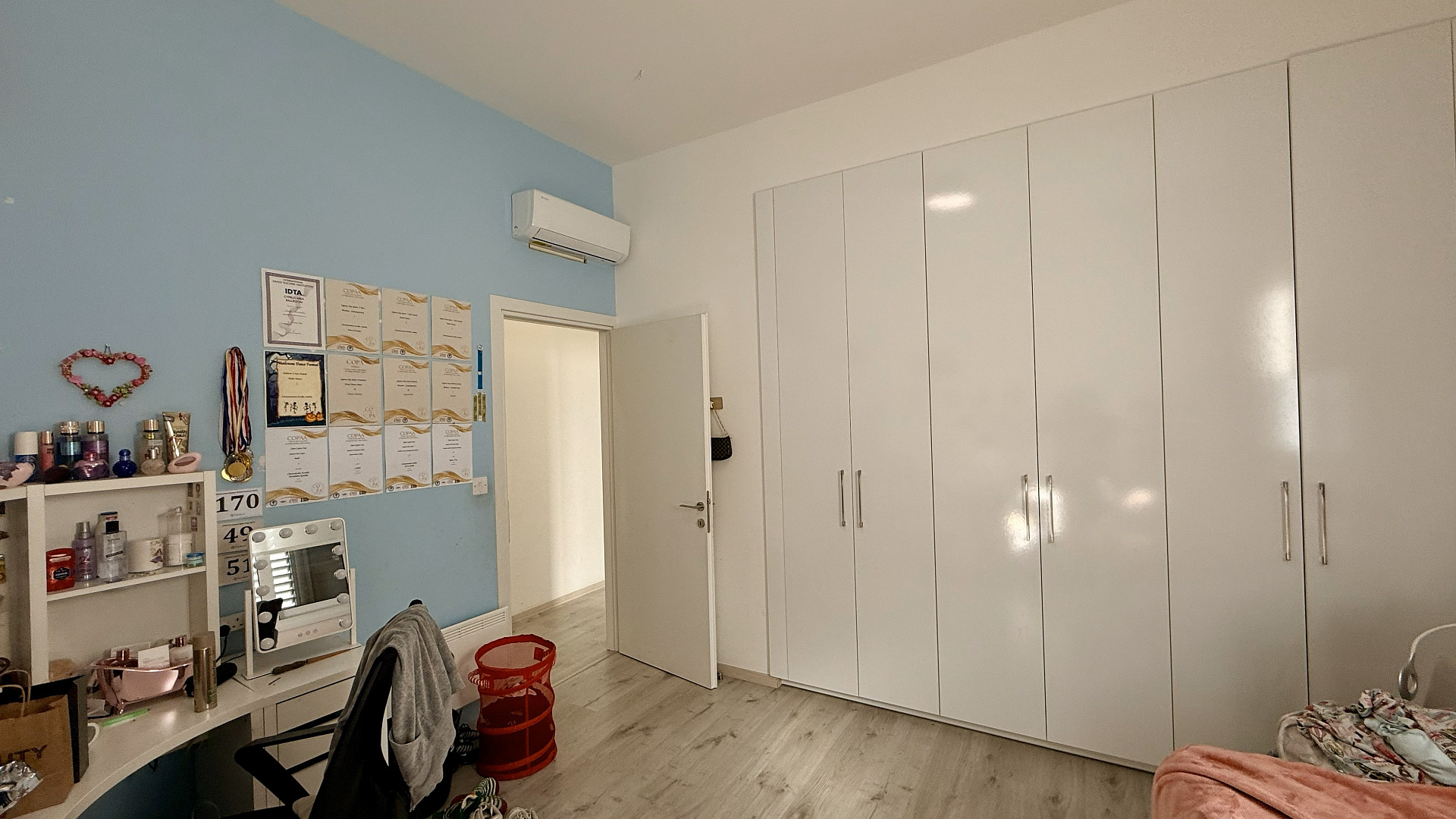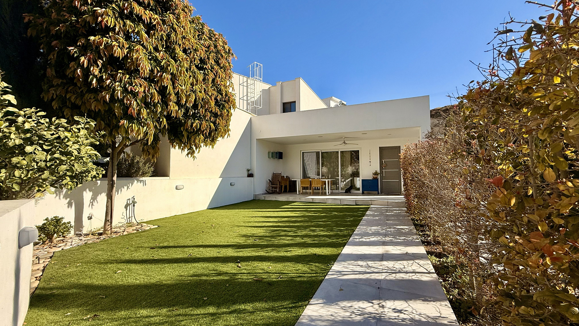Semi-detached three-bedroom house for rent in Agios Athanasios Limassol, located in a quiet area of Panthea near schools, parks, shops and a few minutes from the Mesa Geitonia interchange. The house was built in 2021, has a covered area of 152 m2 and a plot of 435 m2 with a large private garden, is fully furnished and suitable for living with animals. The layout includes a bright living room with high ceilings, three comfortable air-conditioned bedrooms, two bathrooms, a storage room and balconies. The house is equipped with air conditioning in all rooms, energy-efficient BEHA electric heaters, shutters on the windows, laminate floors and a built-in speaker system on the veranda, kitchen and living room.