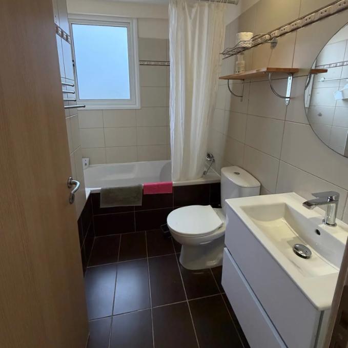 Two-bedroom penthouse for rent in Oroklini Larnaca, located on the second floor of a 2012 building with panoramic sea views. The total area is 200 m2, the penthouse is fully furnished and includes two spacious bedrooms, two bathrooms, a separate kitchen and a bright living room with access to a private roof terrace. The building has an elevator, a communal swimming pool and a gym, and outdoor parking. The apartment is equipped with air conditioning in all rooms.