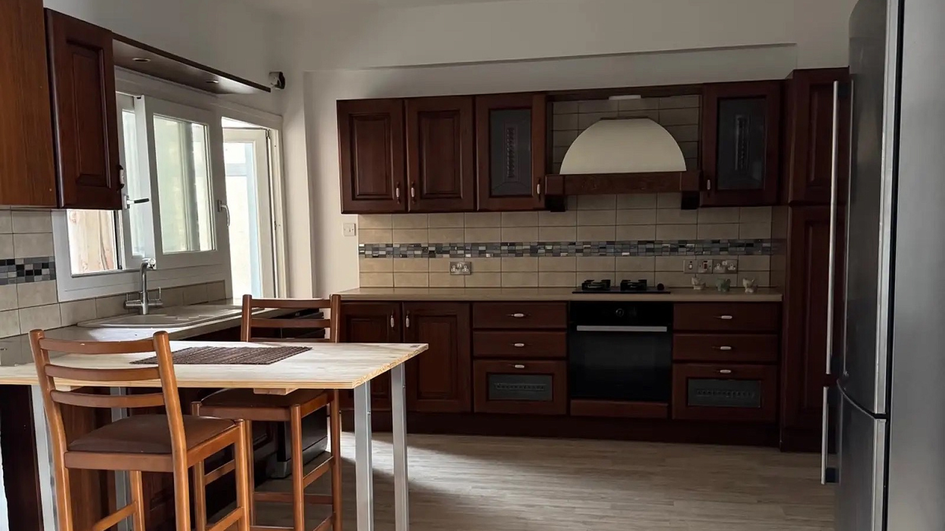 For rent a three-bedroom penthouse with a covered area of 110 m2 in the area of Sotiros, Larnaca. The penthouse includes 3 bedrooms, a living room, a kitchen and 2 verandas. The apartments are fully furnished, air conditioning systems are installed in all rooms, the facility has been recently renovated. The penthouse has a private covered parking space, the building was built in 2004, energy efficiency class A.