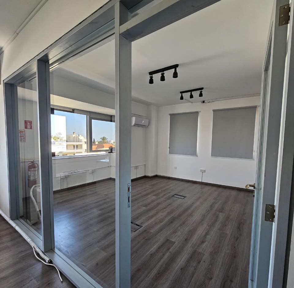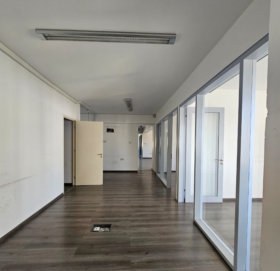 360 m2 office space for rent in the area of Town Center Paphos, Paphos. The office includes an open workspace with the possibility of comfortably accommodating 25-30 workplaces, depending on the layout, fully furnished with high-quality desks and office chairs, equipped with air conditioning, smart RGB lighting, window blinds, as well as automated office systems.