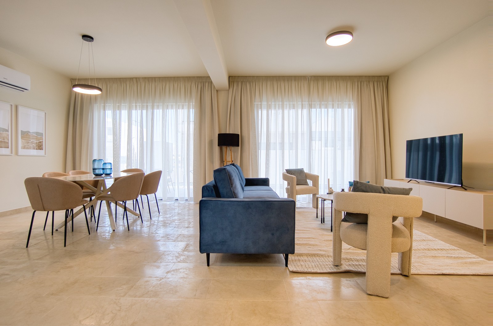 Three-bedroom villa for rent in Empa area, Paphos, with a total covered area of 150 m2 on a plot of 241 m2, built in 2024 in a gated complex with security, a club and a large communal pool for adults and children. Inside there are three spacious bedrooms, 2 bathrooms, a modern kitchen with new appliances, an open-plan living room, air conditioning in all rooms. The villa has a private swimming pool, barbecue area and outdoor parking. The villa is fully furnished, ready to move in, energy efficiency class A. The complex is located in a peaceful area, just a 10-minute drive to the beach and 15 minutes to the airport, providing a comfortable stay with a combination of privacy and amenities for the whole family.