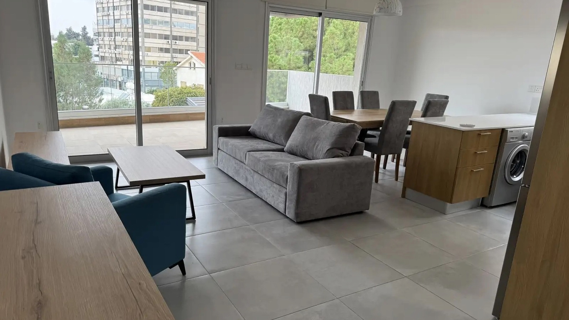 For rent a two-bedroom apartment of 80 m2 in the area of Katholiki, Limassol. The apartment includes two bedrooms, two bathrooms, an open-plan kitchen and a living room, a balcony and a storage room. The apartments are fully furnished and equipped with air conditioning in all rooms, the building is equipped with an elevator. The apartment is located on the 3rd floor. The property is located in an area with convenient and quick access to all central roads and to the city center, supermarkets, bakeries and shops are located nearby. The year of construction of the building is 2019, energy efficiency class B+, covered parking is provided.