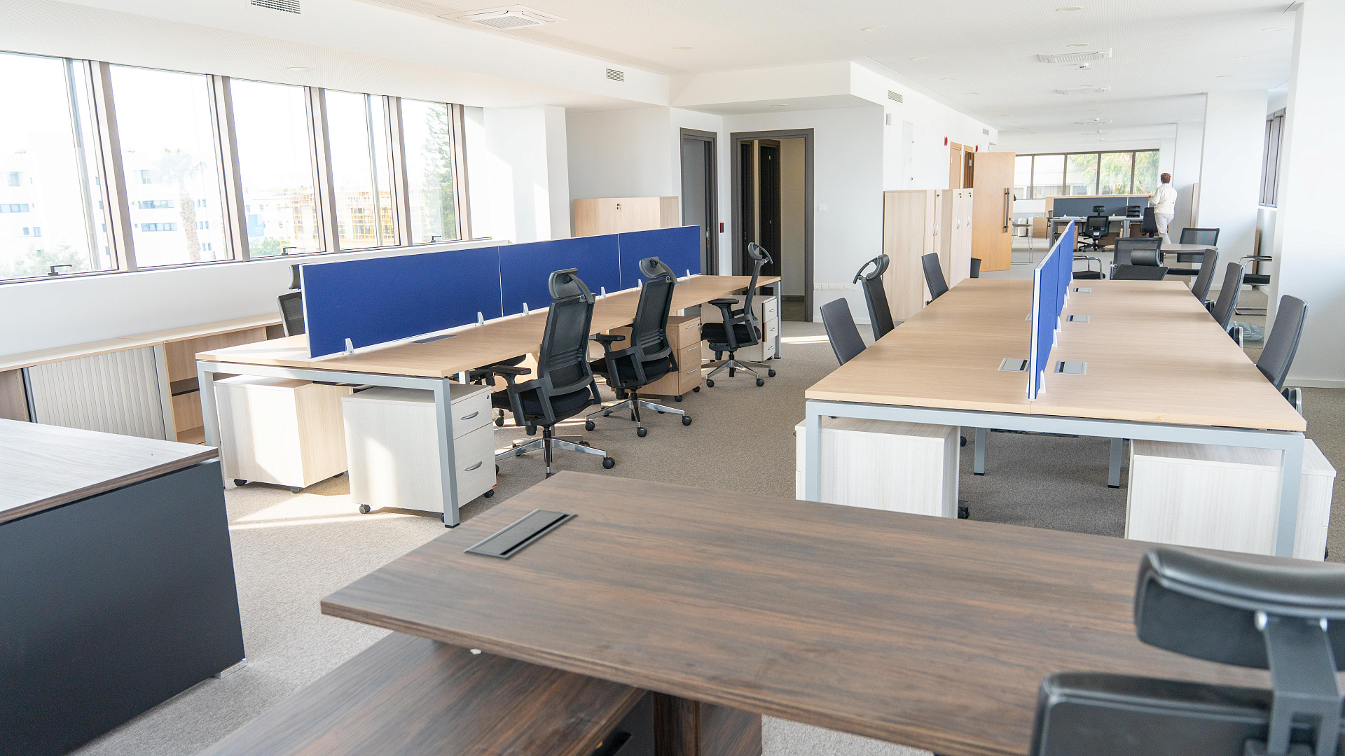Premium class office space with an area of 274 m2 for rent in Tsiflikoudia, Limassol, located in a new building built in 2025 with energy efficiency class A. The office includes work areas with an efficient layout, meeting and event rooms, a balcony, a terrace, multifunctional spaces, a warehouse and an attic, bathrooms and auxiliary rooms. The room is equipped with an elevator, an alarm system, high-speed digital communication, soundproof ceilings, 24-hour access, private parking and a landscaped garden. The property is located on the first line with panoramic views of the sea and the green surroundings, in one of Limassol's sought-after business districts, with convenient access to urban infrastructure and transport interchanges, ideal for companies focused on growth, corporate image and employee comfort.