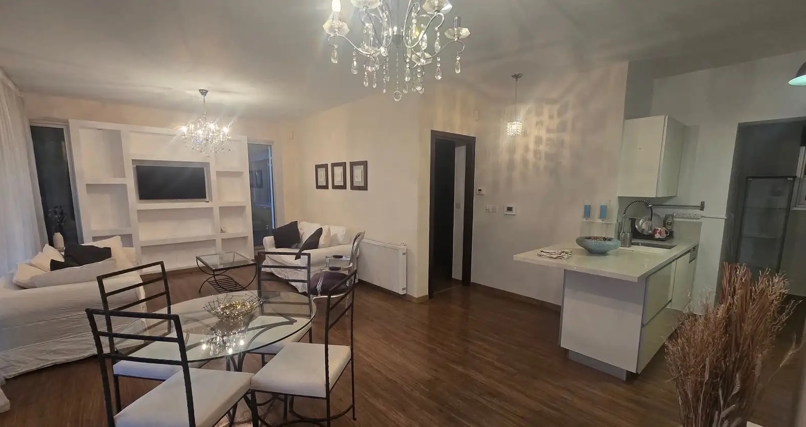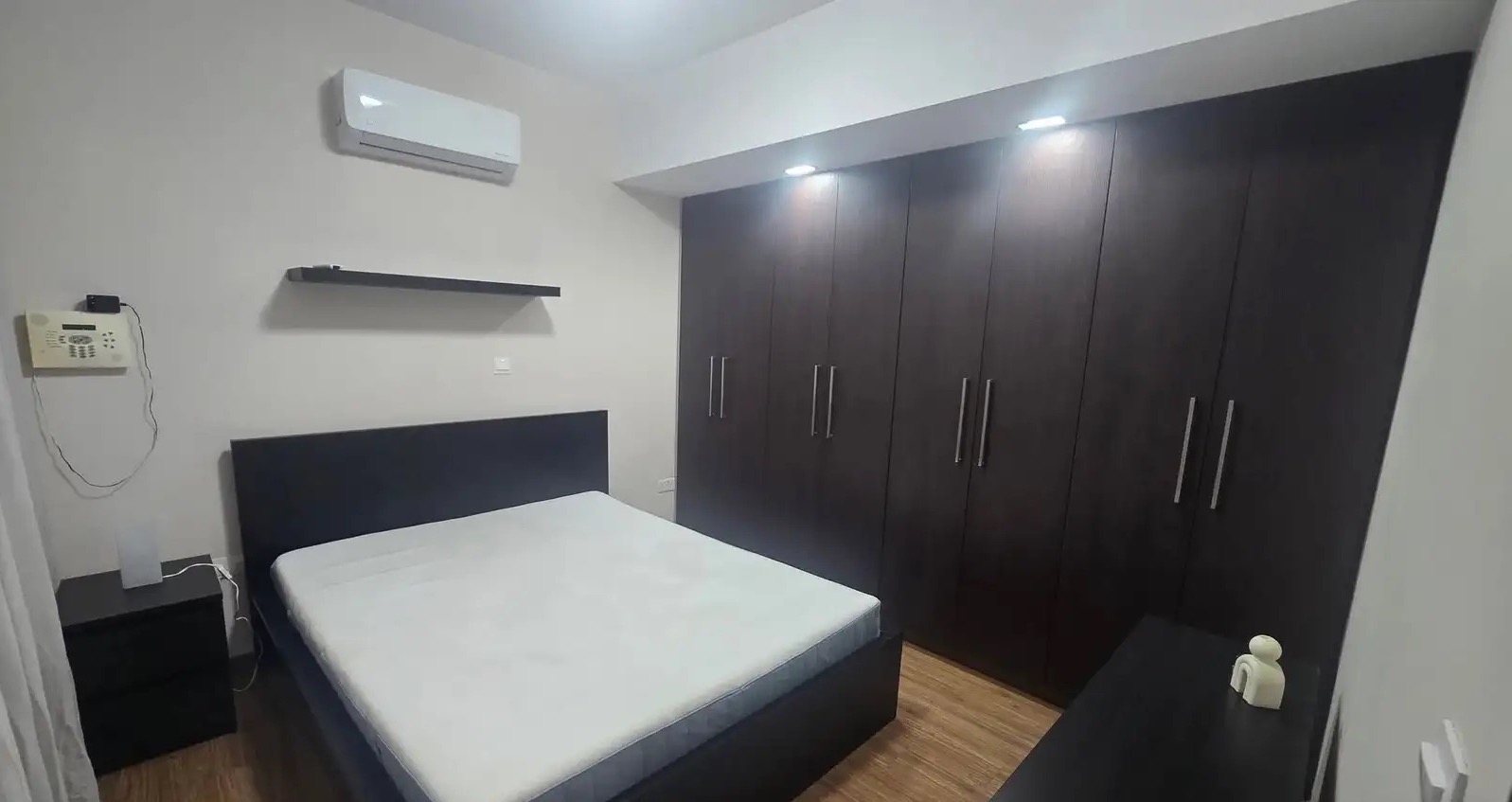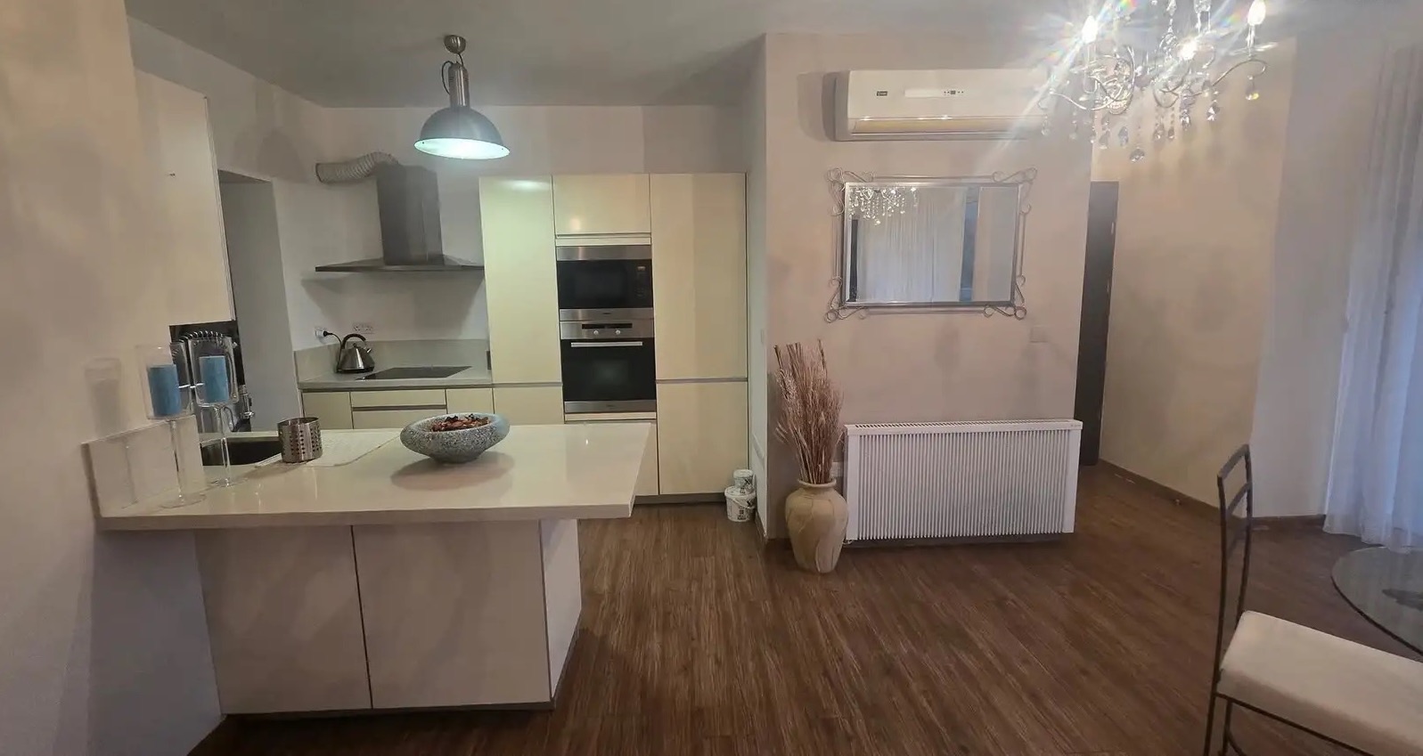 Two-bedroom apartment with a covered area of 120 m2 for rent in the area of Mesa Geitonia, Limassol. The apartments include two bedrooms, one bathroom, a guest bathroom, a kitchen, a living room, a large balcony with a pleasant view, and a storage room. The apartment is fully furnished and equipped with household appliances, air conditioning in all rooms, central heating, elevator and alarm system. The apartment includes a covered parking space. The property is located in a modern small apartment building built in 2021.