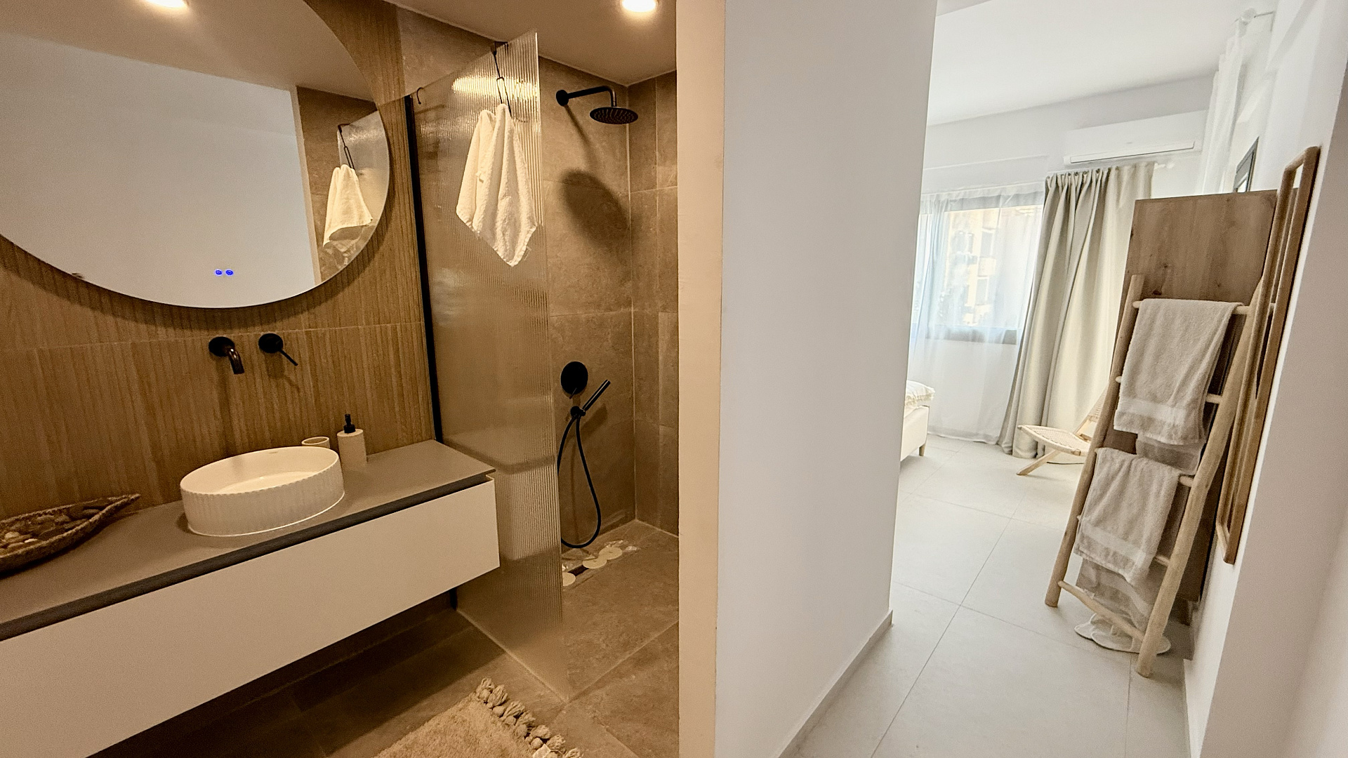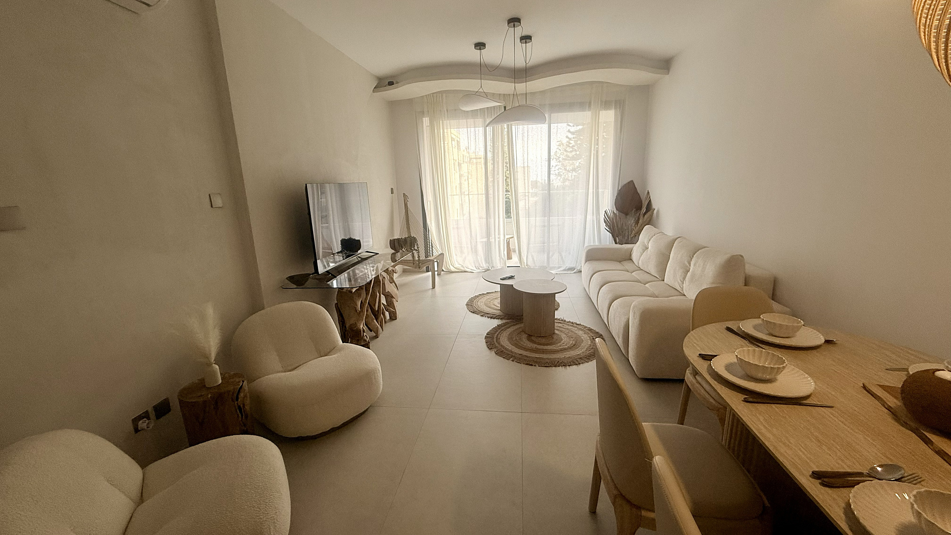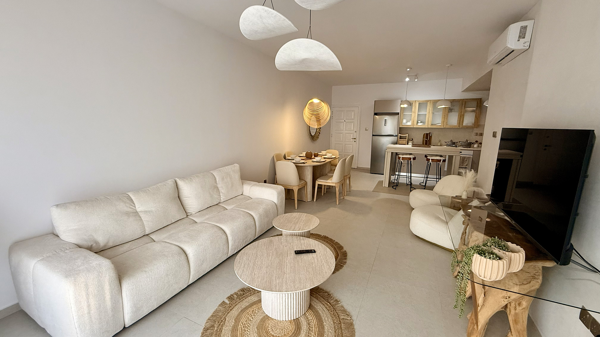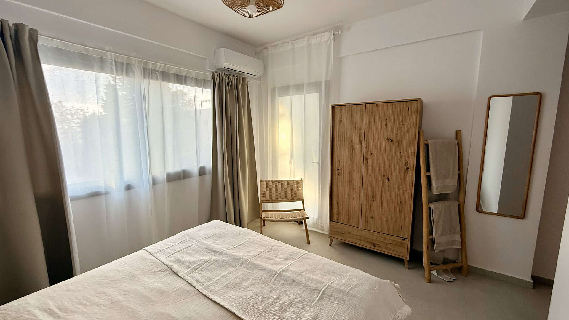 Two-bedroom apartment of 120 m2 for rent in Potamos Germasogeia, Limassol, a five-minute walk from the sea. The apartments include: 3 spacious bedrooms (2 of them with en-suite bathrooms), an additional guest bathroom, an open-plan kitchen and a living room. The apartment is fully furnished and equipped with all necessary household appliances, made in boho-luxury style after major renovation. The residential complex with a protected area is located just one minute walk from Columbia Beach and two minutes from Lidl, with views of the sea and the pool. The residents have access to a large communal swimming pool, a children's pool, a tennis court, a well—maintained garden and private parking.