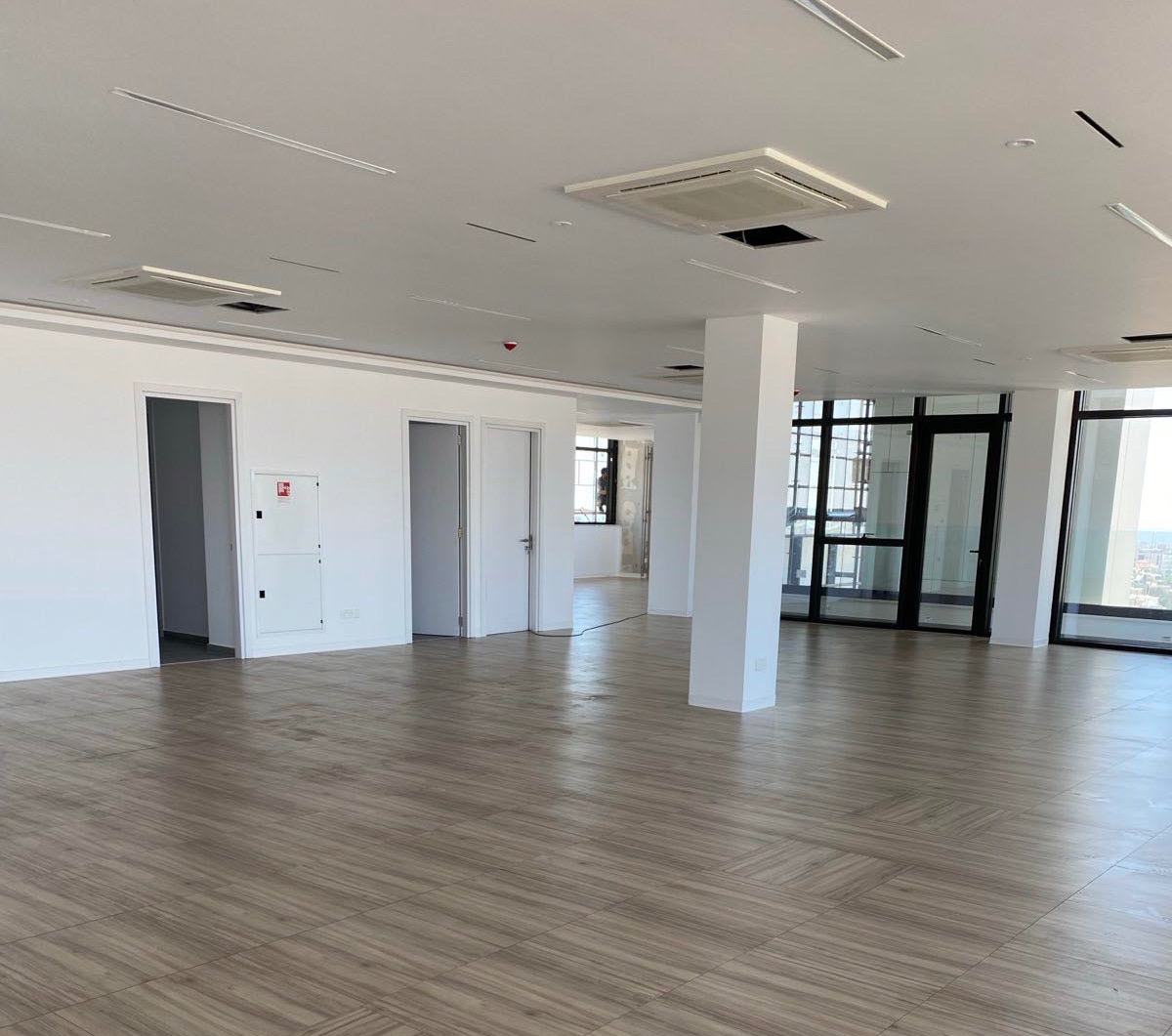 Office for rent on the fifth floor with roof garden in a building under construction, Agia Fyla district, Limassol. It is located next to Limassol Highway. Special attention was paid to the equipment of modern office premises and spacious parking lots. There are 25 parking spaces. On the floor there are two kitchens, two men's and two women's toilets.