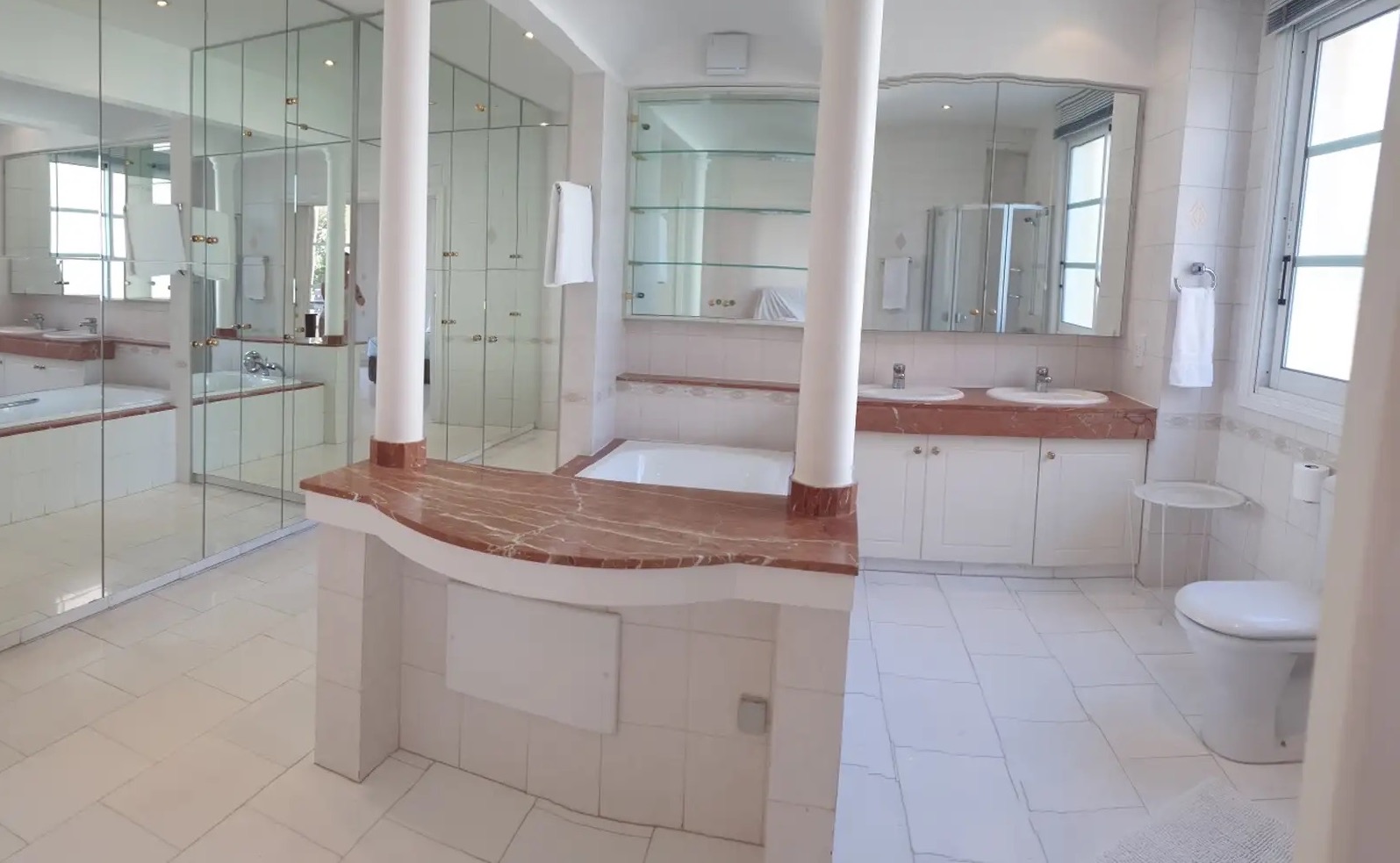 The apartments are unfurnished, the furniture is discussed separately and partially available for sale, equipped with underfloor heating, air conditioning in all rooms, solar panels, built-in hob and AEG oven, Villeroy & Bosch plumbing fixtures, Hans Grohe and Hansa faucets, and are decorated with Thasos marble, granite and marble countertops and kitchen cabinets. cabinets made of solid wood.