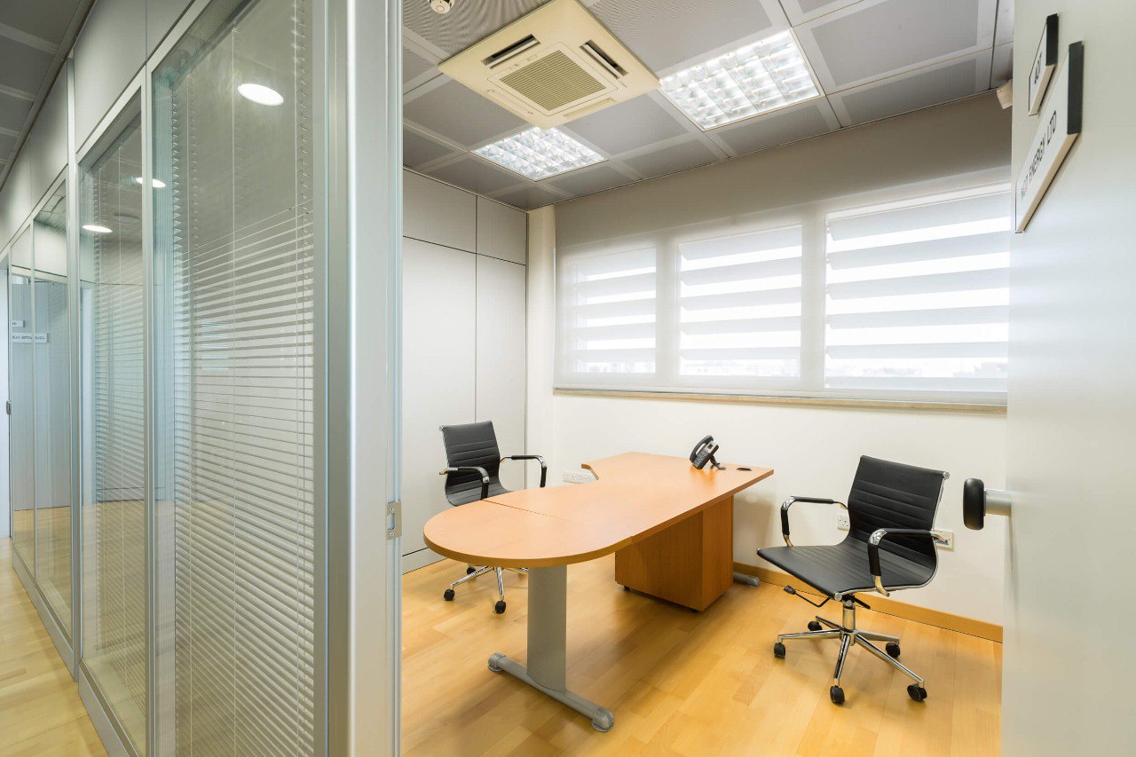 A compact office for one person is for rent in Nicosia, in the Egkomi area - with access to high-speed Internet / Wi-Fi, a private telephone line, a locker, a shared kitchen and a lounge area. A shared conference room is available for meetings. Outdoor parking for 5 spaces, while there are many additional spaces around the building, low cost, without responsibility for the management of the facility.