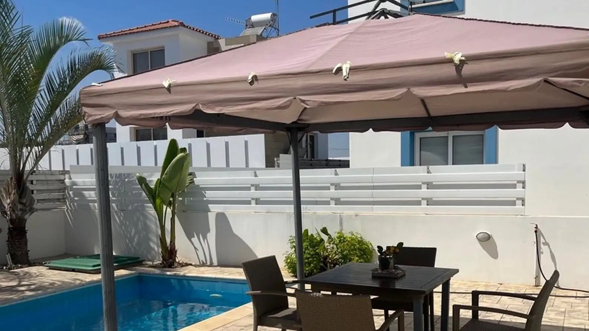 For rent a two-bedroom detached house with a covered area of 100 m2 on a plot of 287 m2 in the area of Kapparis, Famagusta. The house includes 2 bedrooms, 2 bathrooms, a bright living room with a dining area, a fully equipped kitchen, a pantry, and a spacious courtyard.