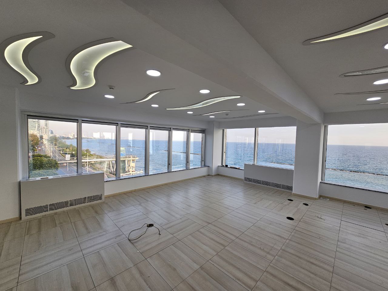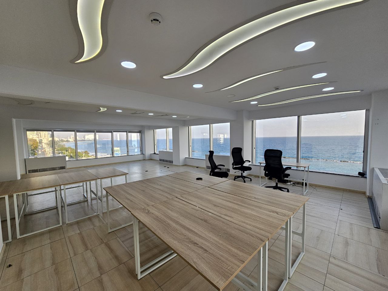 An office for rent in Molos district, Limassol city with an area of 230 m2, occupying the entire fourth floor with panoramic sea views. The office has three separate rooms and an open work area, a kitchen and an air-conditioned server room. There are two covered parking spaces, as well as the possibility of parking next to the office.
