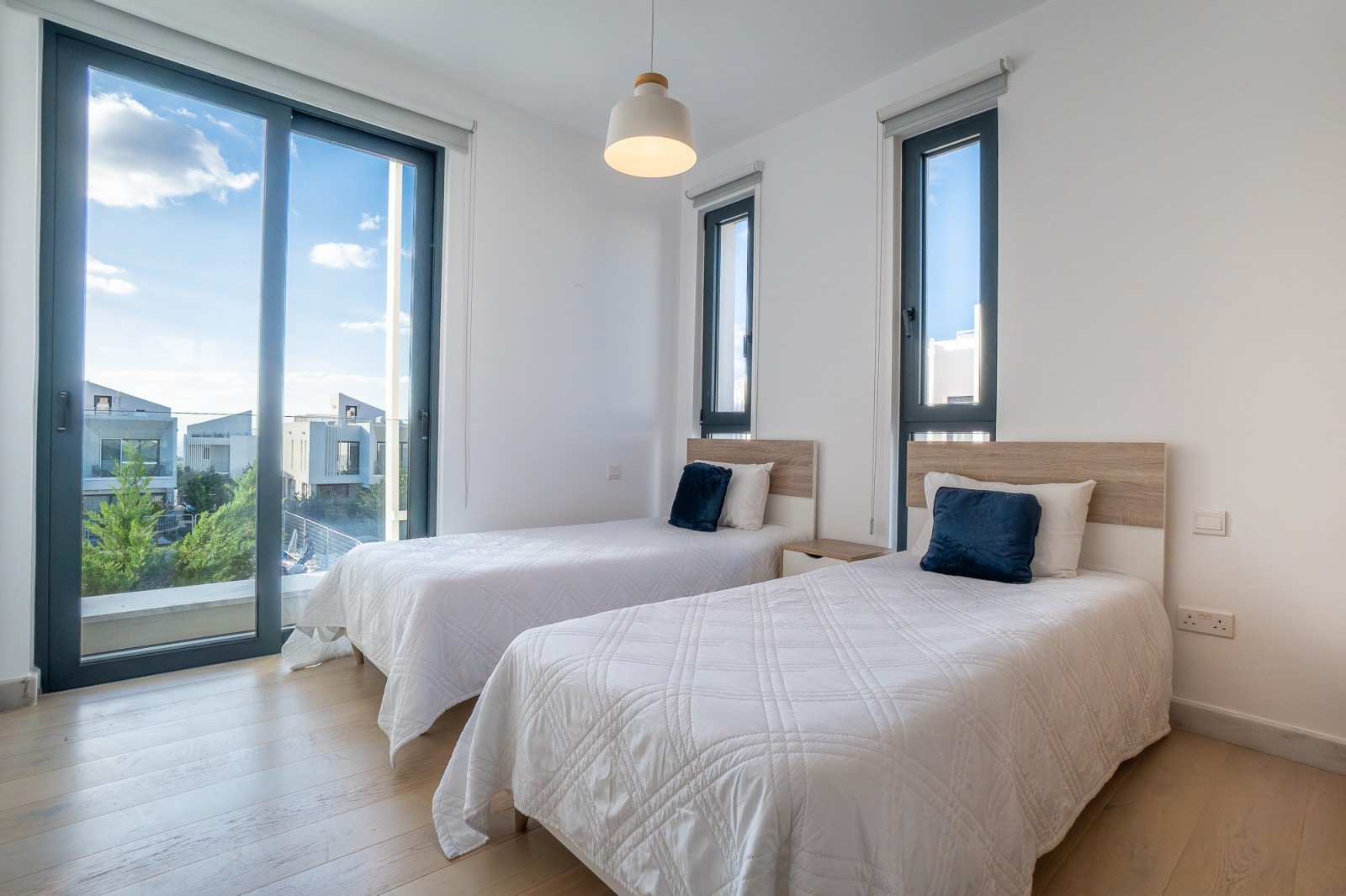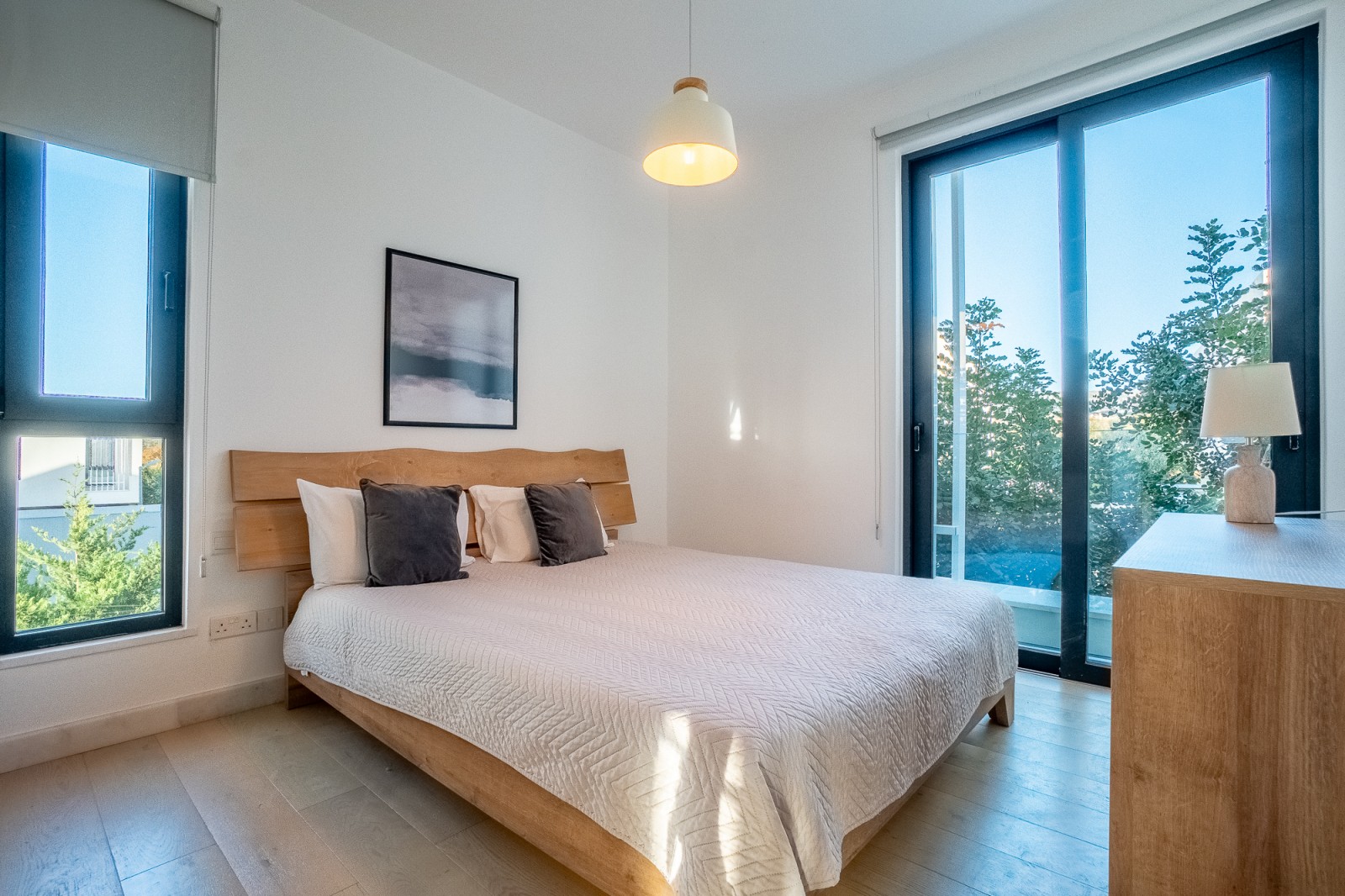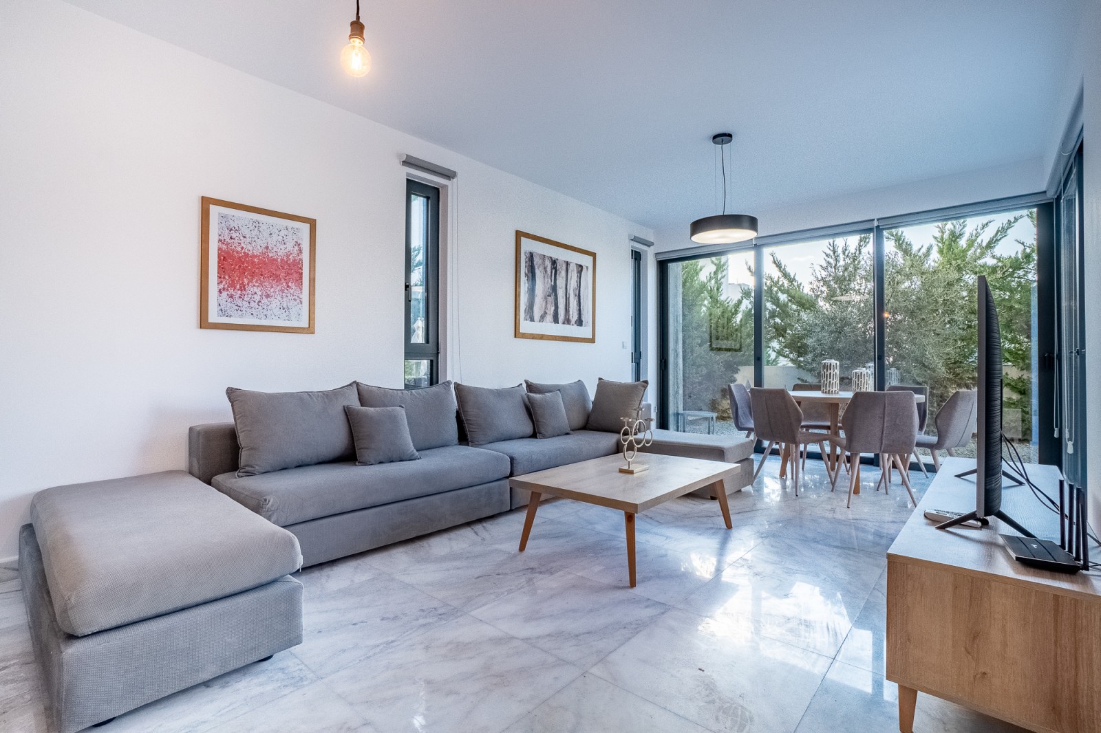 Three bedroom villa for rent in Empa area, Paphos city. The villa is located near the traditional Cypriot village of Emba and offers a private area with a manicured garden, a terrace for relaxing and dining outdoors overlooking the garden and pool. On the ground floor there are three bedrooms, including a master bedroom with a king-size bed and a bathroom overlooking the pool, as well as one double and one double bedroom. The rear part of the plot with sun loungers and a communal pool is accessible from the outside. The villa is fully furnished, equipped with air conditioning, Wi-Fi, an open kitchen, a barbecue area, parking and terraces with panoramic views.