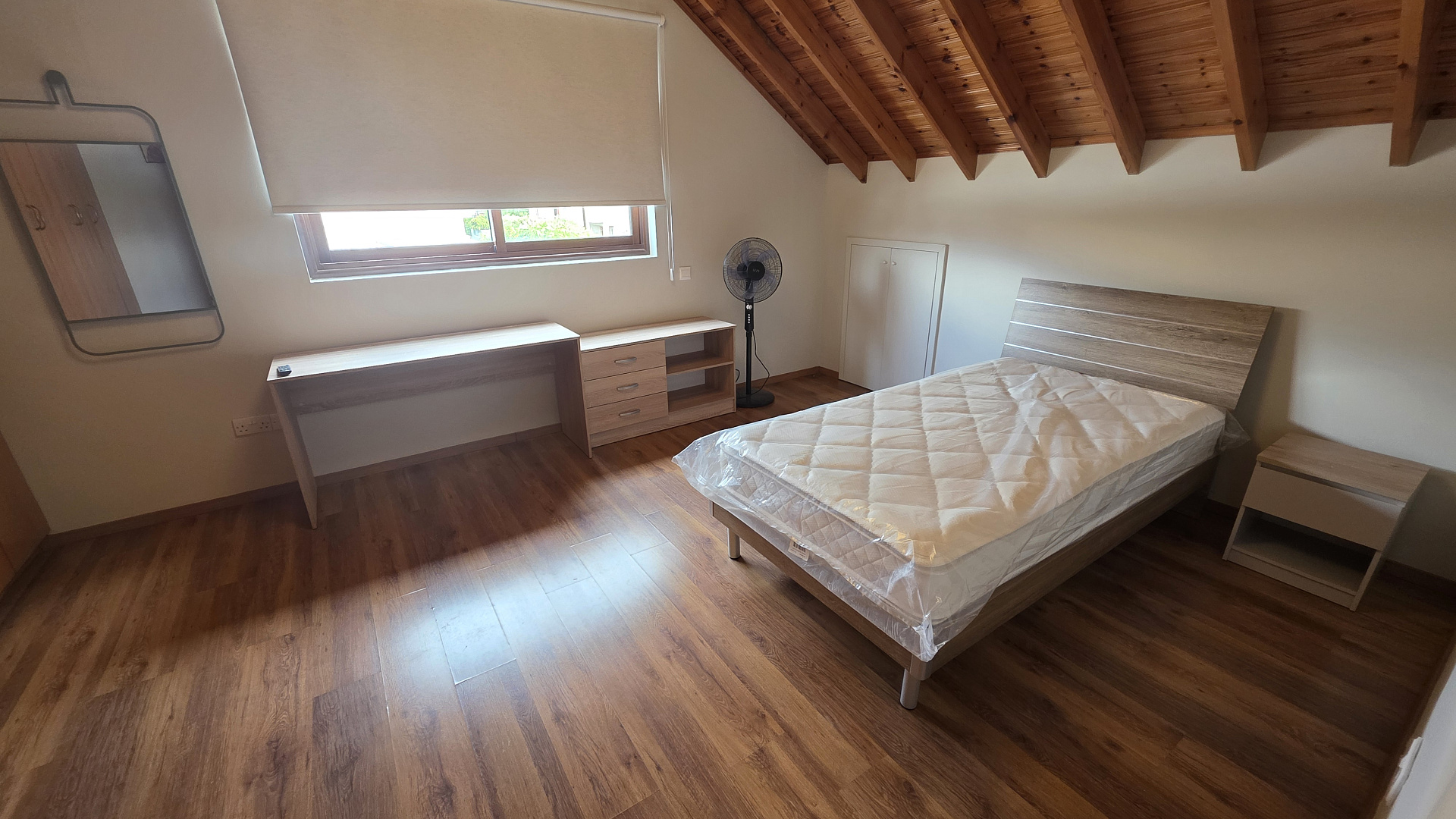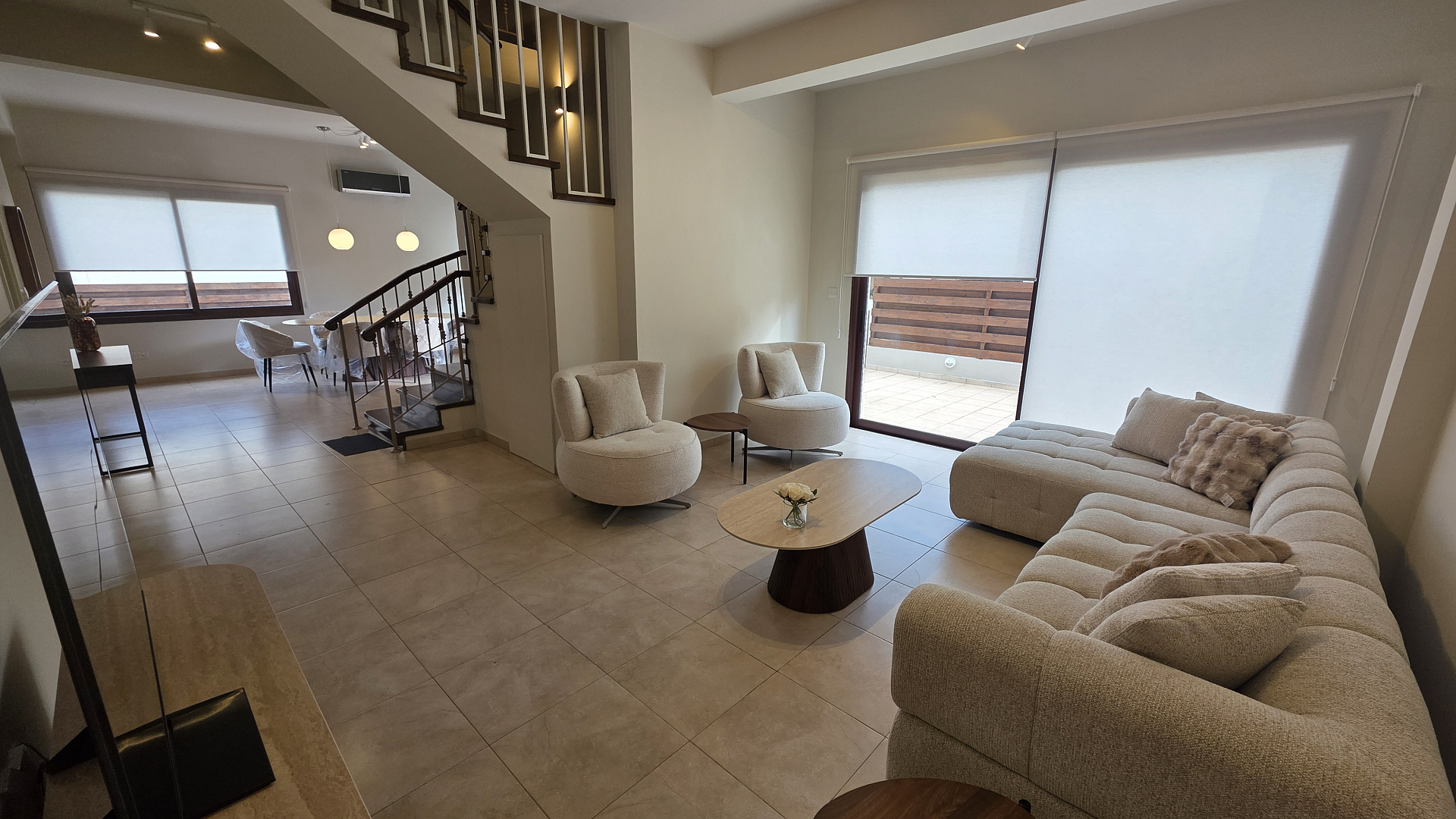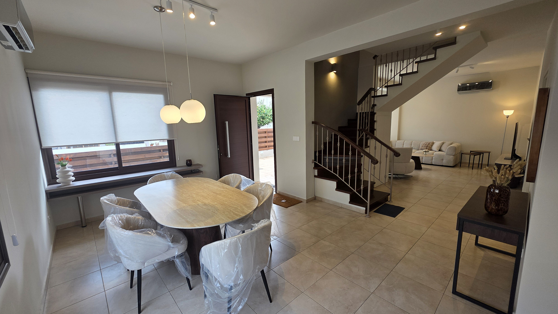 Three-bedroom house for rent in the area of Mesa Geitonia, Limassol, with an area of 160 m2 on a plot of 280 m2, fully furnished and ready to move in. The house has two floors and includes three spacious bedrooms with spacious closets, two bathrooms, a living and dining area, as well as one bedroom with a foosball table. There are front and rear verandas, a covered parking space for three cars and a well-maintained garden. The house is equipped with air conditioning in all rooms and a solar panel system that ensures energy efficiency. The location in the prestigious Mesa Geitonia area provides quick access to the city center, beach, highway, schools, supermarkets and other amenities.