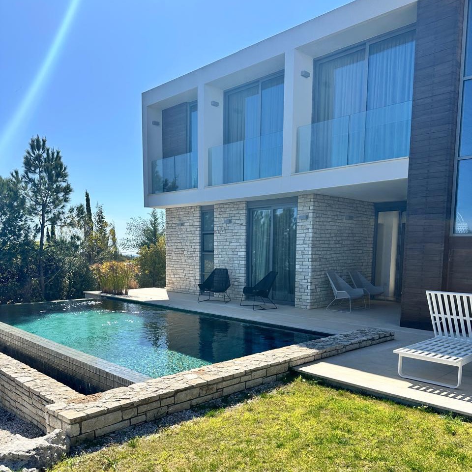 Four-bedroom villa of 242 m2 for rent in Tsada area, Paphos. The villa includes four bedrooms, a living room with a fireplace, a kitchen, bathrooms, washrooms, as well as a storage room and an outdoor parking. The residence is fully furnished and equipped, VRV air conditioning and underfloor heating are installed, parquet floors are finished in the bedrooms. The property is located in a prestigious resort complex with panoramic mountain views. The house is a new modern building, the territory has its own swimming pool, a well-kept garden and an equipped barbecue area.