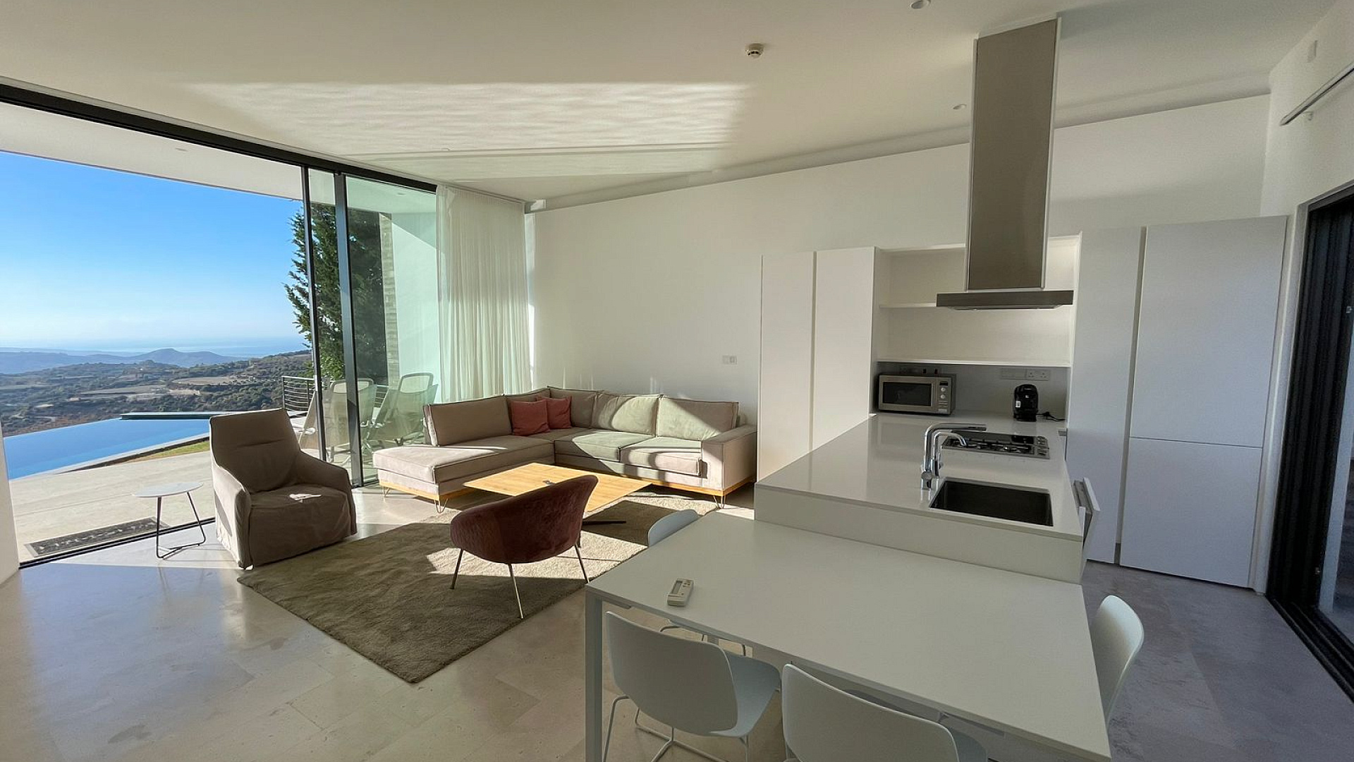 Bungalows for rent in the Tsada mountains. The picturesque view and aesthetics are perfectly combined in the selected furniture and finishing materials. Two bedrooms, one of which is a master bedroom. The open-plan living room with magnificent mountain scenery is combined with a fully equipped kitchen. The rental price includes maintenance of the pool and garden, as well as round-the-clock supervision.