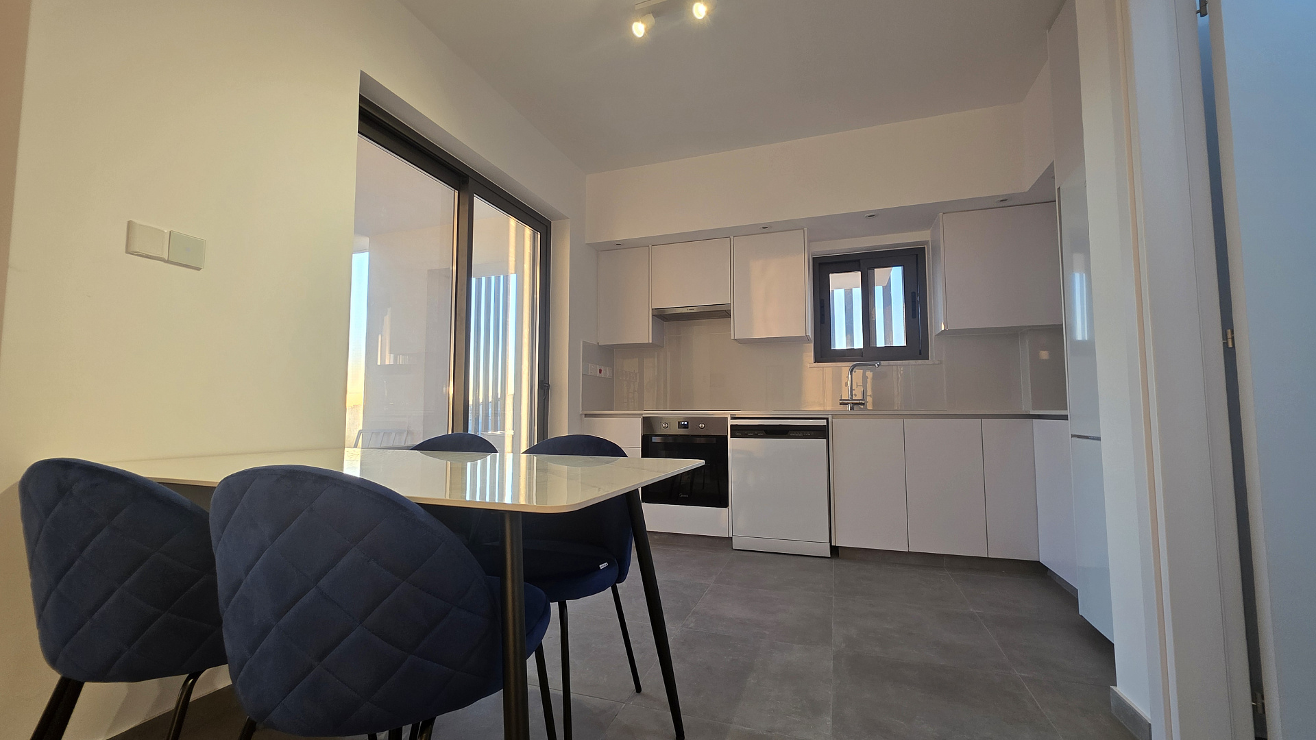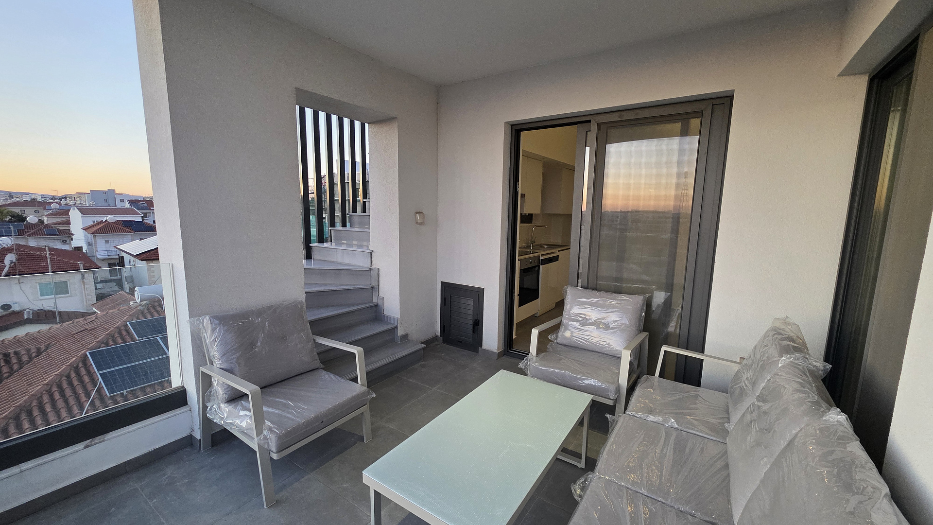 For rent a brand new two-bedroom penthouse with panoramic mountain and sea views in a modern complex on the border of Larnaca and the popular Livadia area, close to all city amenities. The penthouse is fully furnished and equipped with household appliances and air conditioning. The layout includes a living room with an open-plan kitchen with access to a spacious covered veranda, two cozy bedrooms, two bathrooms, a laundry area and a large roof garden. Double-glazed windows provide sound and thermal insulation, windows are equipped with mosquito nets.