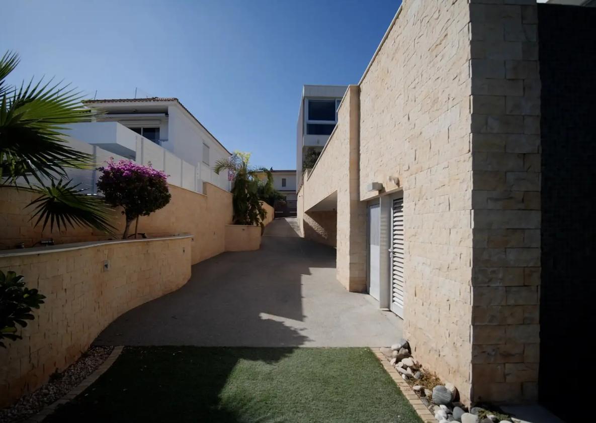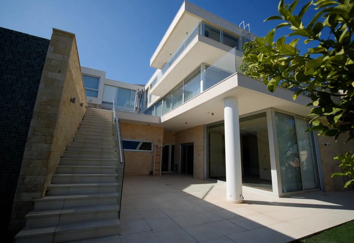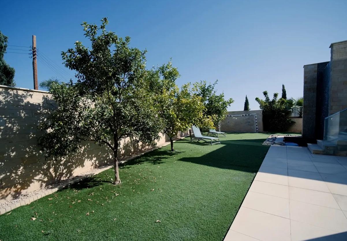 A spacious six-bedroom villa for rent in Germasogeia, Limassol, a modern house built in 2016 with a total area of about 960 m2, located on a plot of about 1000 m2 with panoramic views of the city and the sea. The villa is designed in a smart home format with lighting, climate control, curtains and a security system, is fully equipped with air conditioning in all rooms and underfloor heating, and is offered partially furnished. The layout includes a ground floor with a spacious open-plan living room, kitchen and dining area, an upper floor with three bedrooms with private bathrooms, as well as a lower floor with two bedrooms, an additional room that can be used as storage, a laundry room, a second kitchen, a large relaxation area, a sauna and a home cinema. There is a private heated swimming pool, a well-maintained garden, a relaxation area and a BBQ, balconies, storage rooms, a play area, an indoor parking for two cars, an alarm system and video surveillance, as well as an orchard. The convenient location provides quick access to the highway and proximity to the entire urban infrastructure.