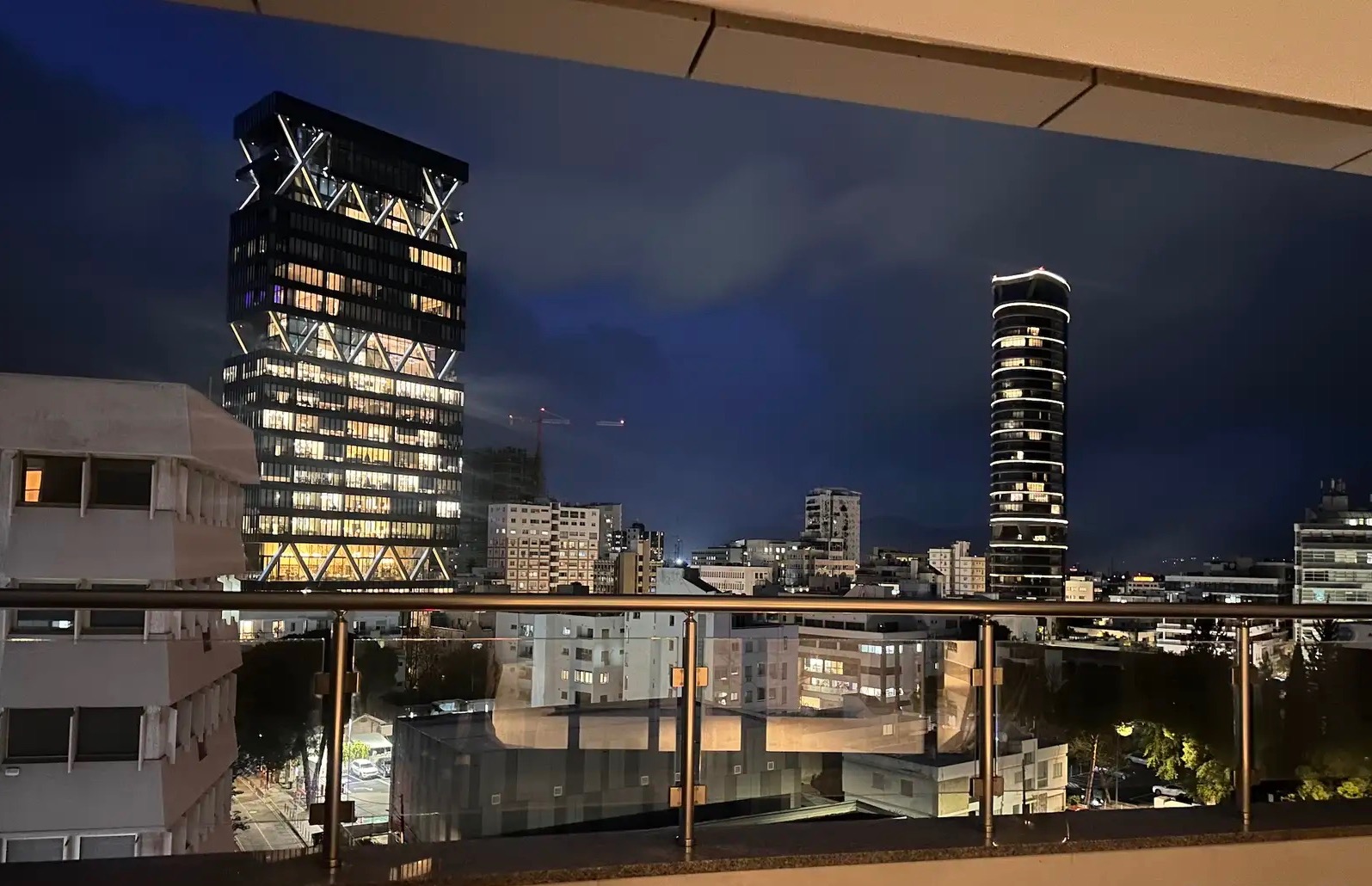 Two-bedroom apartment with a covered area of 160 m2 for rent in the area of Agioi Omologites, Nicosia. The apartments include 2 en-suite bedrooms, a kitchen, a living room, 2 bathrooms and 3 covered balconies with a total area of 40 m2. The floors are made of specially cut Italian marble, the master bedroom is carpeted, the kitchen, living room and corridors are decorated with oak paneling, the balconies are decorated with wooden ceilings with spot lighting. The property is fully furnished and equipped with Miele appliances, underfloor heating, VRV air conditioning system in all rooms, electric curtains with touch pads, televisions, Sofitel beds with soft leather headboards, jacuzzi and rain shower system in the master bedroom, elevator and private covered underground parking. The apartment is located in the center of Nicosia, within walking distance to all urban infrastructure and amenities, with panoramic views of Pendaktylos and the city.