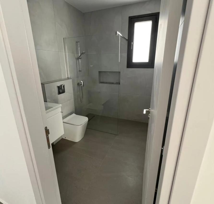 New two-bedroom apartment for rent in Agia Paraskevi, Lakatameia, Nicosia. The apartment is located on the ground floor of a modern house built in 2025. The total area is 82 m2. The layout includes two bedrooms and two bathrooms. The apartment is unfurnished.Air conditioners are installed in all rooms. The house has an elevator. The apartment includes a balcony, a storage room and a covered parking space. A 2 kW photovoltaic system is also installed.