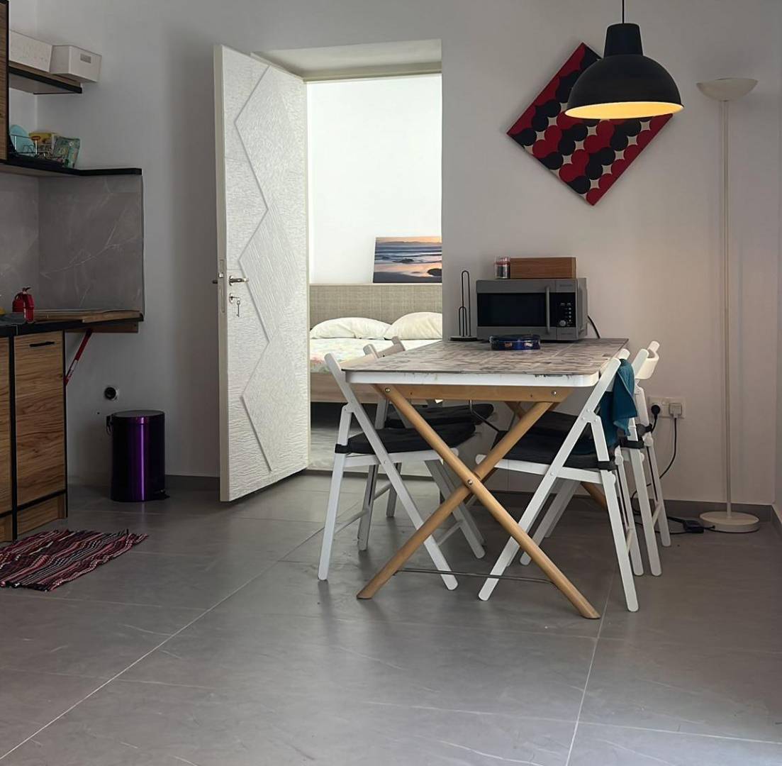 Apartments for rent in the area of Sotiros, Larnaca. Renovated with 1 bedroom and 1 bathroom. It includes a new built-in open-plan kitchen, spacious living room, modern furniture and appliances. There is also a covered veranda of 10 m2, solar panels, a storage room. Everything you need is nearby, and the sea is just a 5-minute drive away.