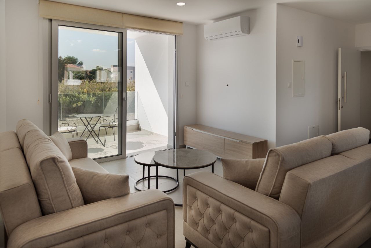 Brand new 2 bedroom apartment for rent in a modern residential complex built in 2025 in Livadia, Larnaca. The total area of the apartment is 91 m2, of which 77 m2 is a covered living area and 14 m2 is a covered veranda. The interior is designed for a comfortable stay and includes an open living room with a kitchen, two bedrooms and two bathrooms. All electrical appliances are installed, air conditioning in all rooms, blinds, a storage room is provided. The apartment is located on the 2nd floor. The building has an elevator, covered parking and a balcony.