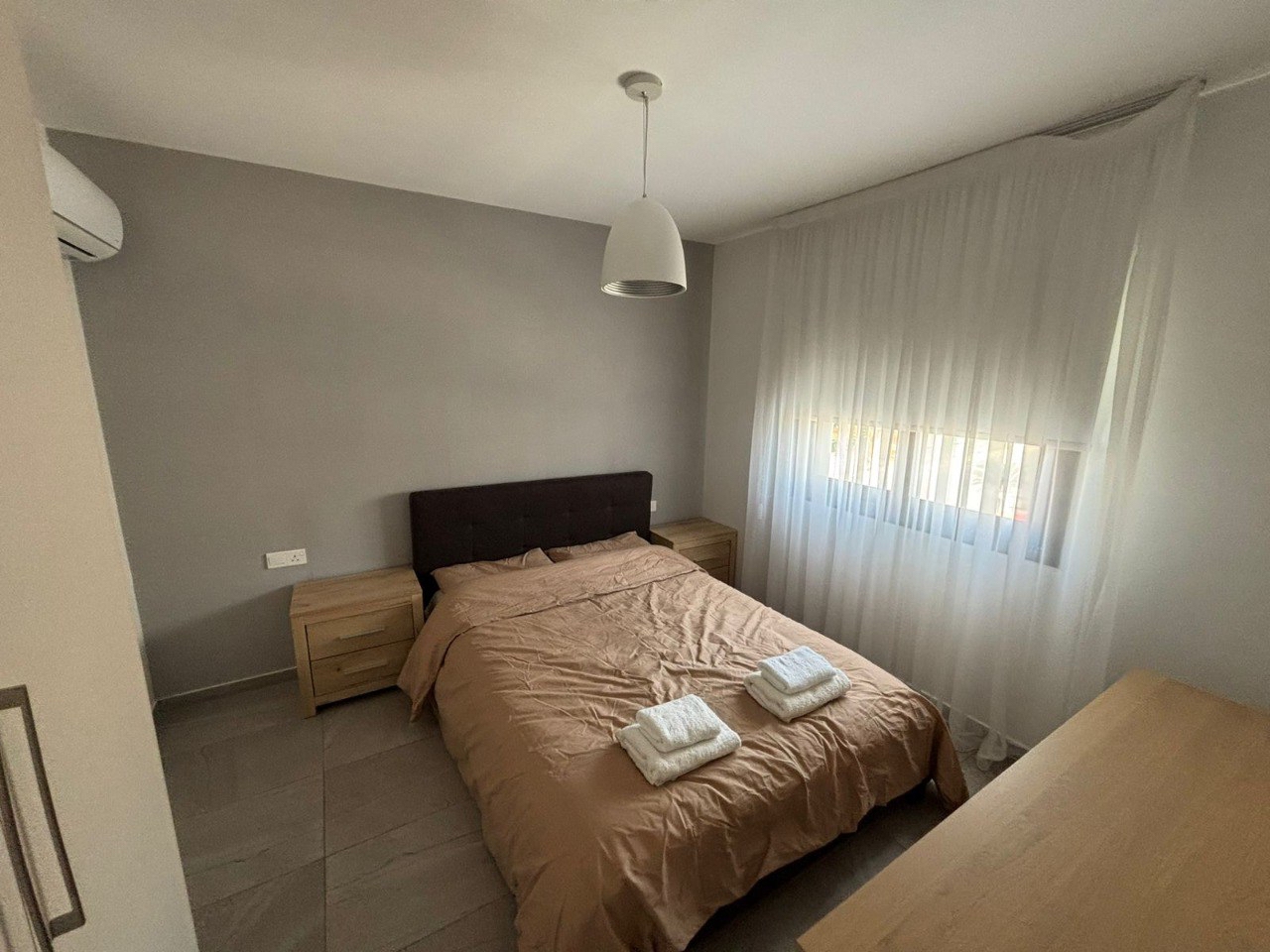 Two-bedroom apartment of 89 m2 for rent on the ground floor in the area of Sotiros, Larnaca. The apartment is fully furnished and equipped with household appliances, including air conditioning, underfloor heating. There is a balcony of 12 m2. The apartment is located in a secure building in a new building behind the Sklafeniti supermarket. Covered parking is available for cars.
