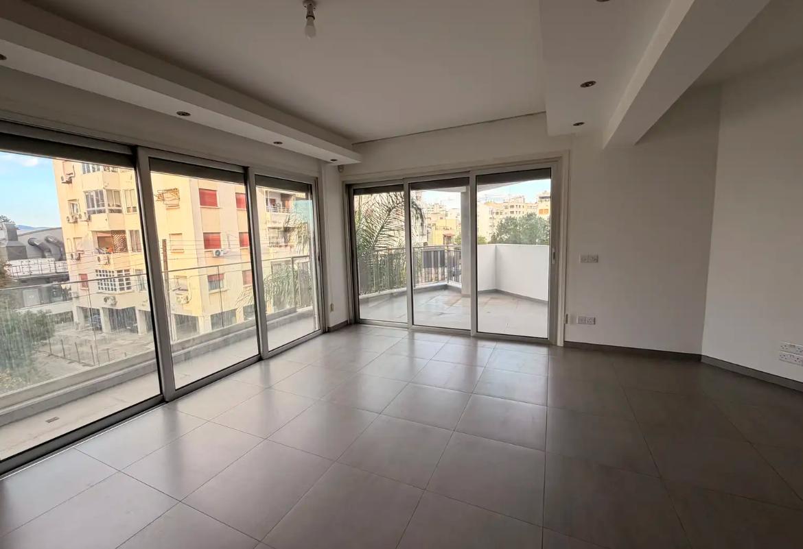 Four-bedroom apartment for rent in Strovolos - Acropolis, Nicosia, with a total area of 170 m2, located on the second floor of a modern building built in 2012, occupying the entire floor and located in the central part of the area next to the Central Bank of Cyprus, opposite the park. The apartments include four bedrooms and three bathrooms, two of which are en-suite, as well as a guest bathroom, complete air conditioning in all rooms, underfloor heating and a heat pump, balconies, a storage room, an elevator and an alarm system. There is a covered parking for two cars, the building consists of only four apartments, one per floor, the property is offered unfurnished, utilities are included.