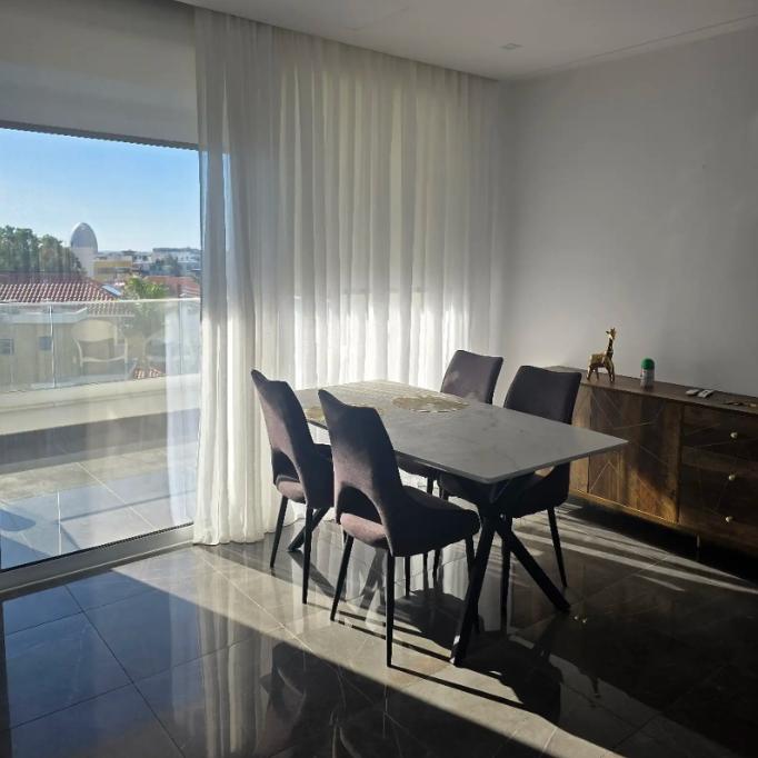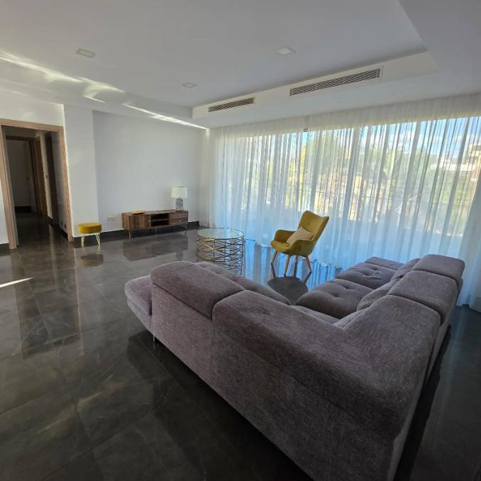 Three-bedroom apartment for rent in Agios Athanasios, Limassol, with a total area of 110 m2, located on the second floor of a well-maintained building built in 2016. The apartment is fully furnished and includes three bedrooms, two bathrooms with a shower and a toilet, a living room with a comfortable kitchen, as well as two verandas. There is full air conditioning in all rooms, an elevator, a covered parking and a separate storage room.