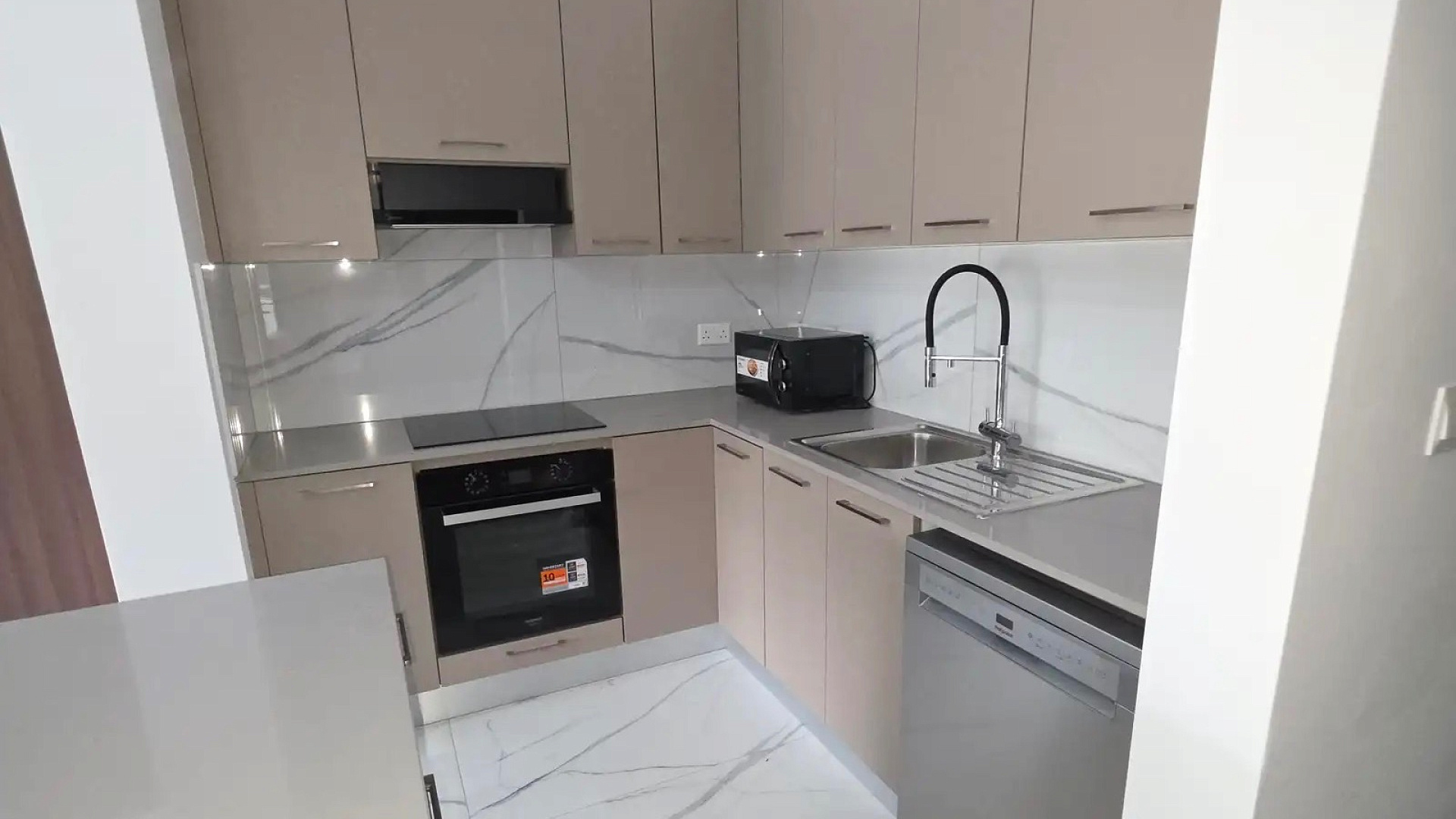 Two-bedroom apartment of 100 m2 for rent in Germasogeia, Limassol. The apartment includes 2 bedrooms, 2 bathrooms with toilets, a kitchen, a living room, a balcony and a pantry. The apartments are fully furnished and equipped with household appliances, including a refrigerator, dishwasher, oven, microwave, washing machine and dryer, air conditioning systems are installed in all rooms and underfloor heating throughout the apartment. The property is located in a new building built in 2025 with an elevator, belongs to energy efficiency class A, has not been used before, has a covered parking space, a spacious veranda. The apartment is located in a quiet hilly part of the Germasogeia area, providing a peaceful residential atmosphere with convenient proximity to the infrastructure and business areas of Limassol.