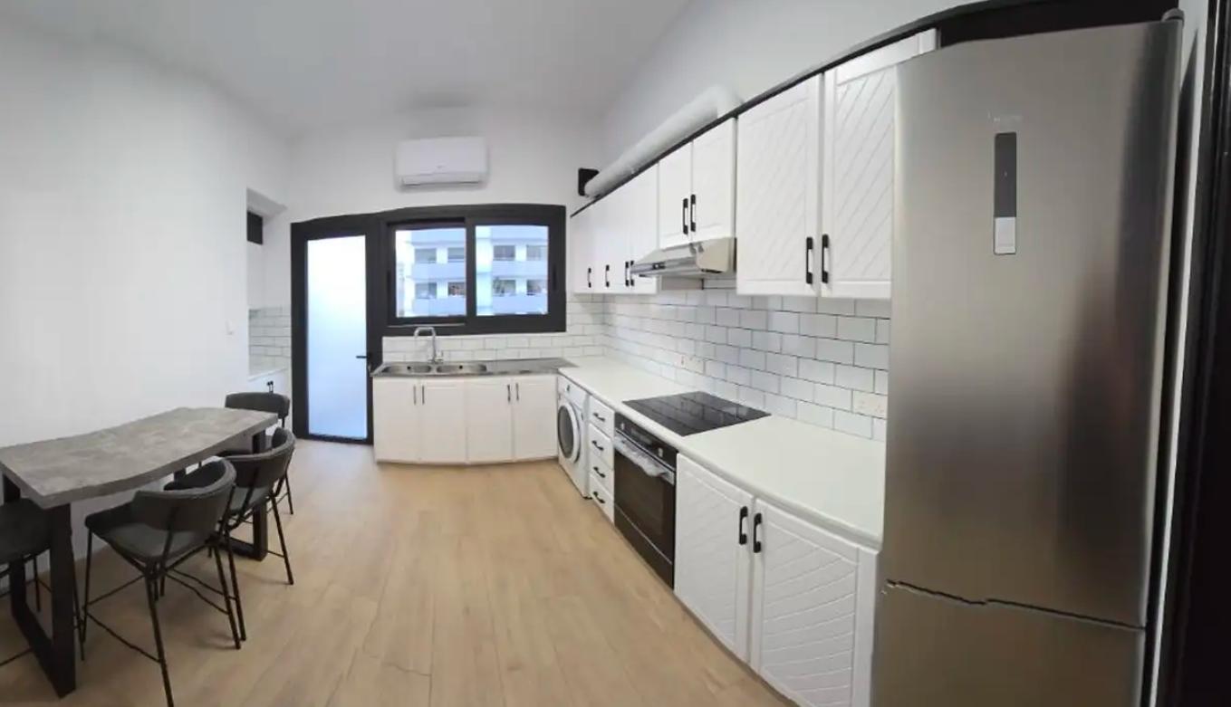 Two-bedroom apartment for rent in Mesa Geitonia, Limassol, located on the second floor of a residential building with an elevator. The total area is 96 m2. The apartments are completely renovated and decorated in a modern style, fully furnished and ready to move in. The layout includes two bedrooms and one bathroom with shower, as well as a living area and a separate kitchen equipped with new appliances. Each room, including the kitchen, has air conditioning, good sound insulation, and solar panels. The apartment has two balconies, as well as one covered parking space. The facility is located in one of the most sought-after areas of the city, close to supermarkets, a pharmacy and a bakery, with convenient access to the highway.