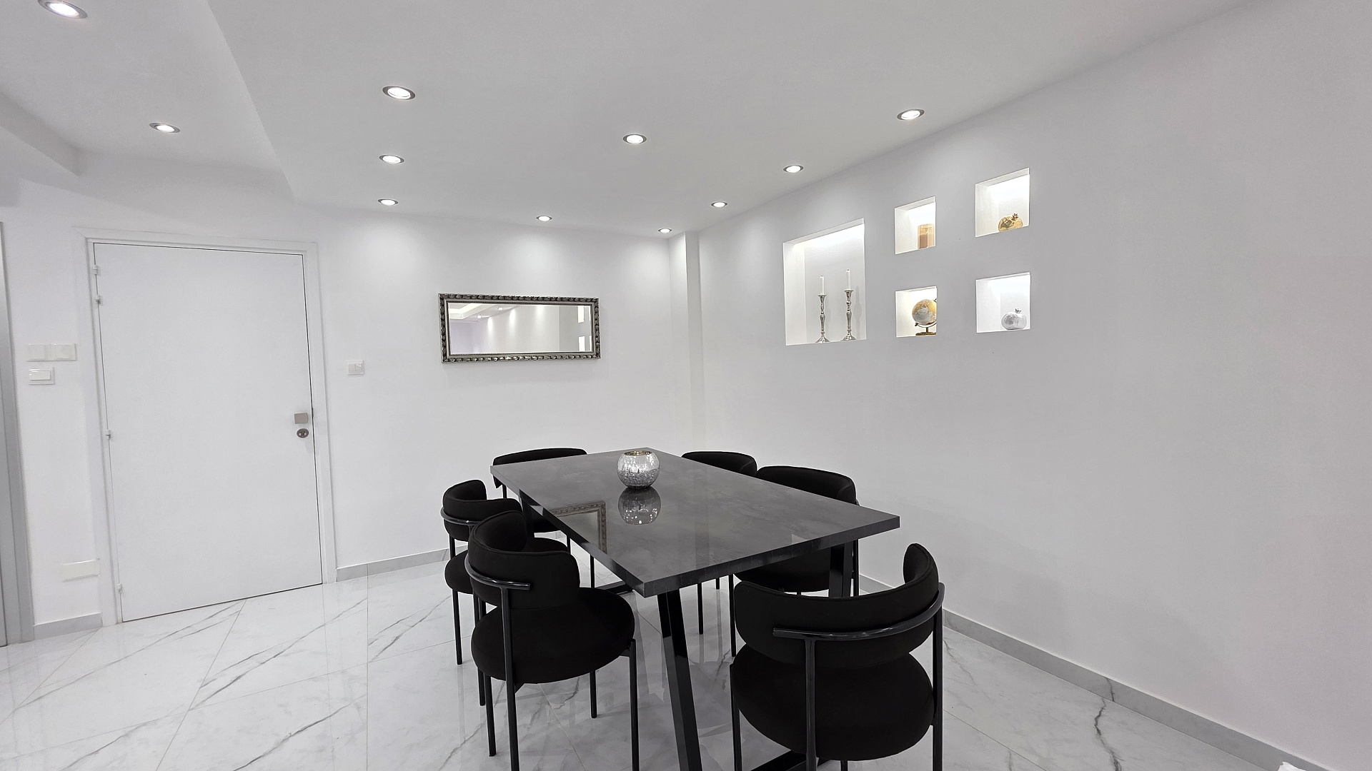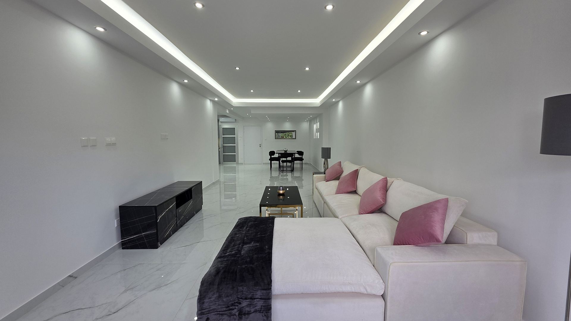 For rent a three-bedroom apartment with a total area of 153 m2, located in a residential complex 60 meters from the beach in the area of Agios Tychonas, Limassol. The apartment includes three bedrooms, each with its own bathroom, a guest bathroom, an open-plan kitchen, a living and dining area, a covered eastern veranda, as well as a small veranda with a washing machine and dryer area and a storage space. The apartments are unfurnished, equipped with a fully equipped kitchen with household appliances, air conditioning in all rooms, built-in wardrobes, shutters, mosquito nets and curtains, suspended ceilings with spot and LED lighting, as well as a solar water heating system.