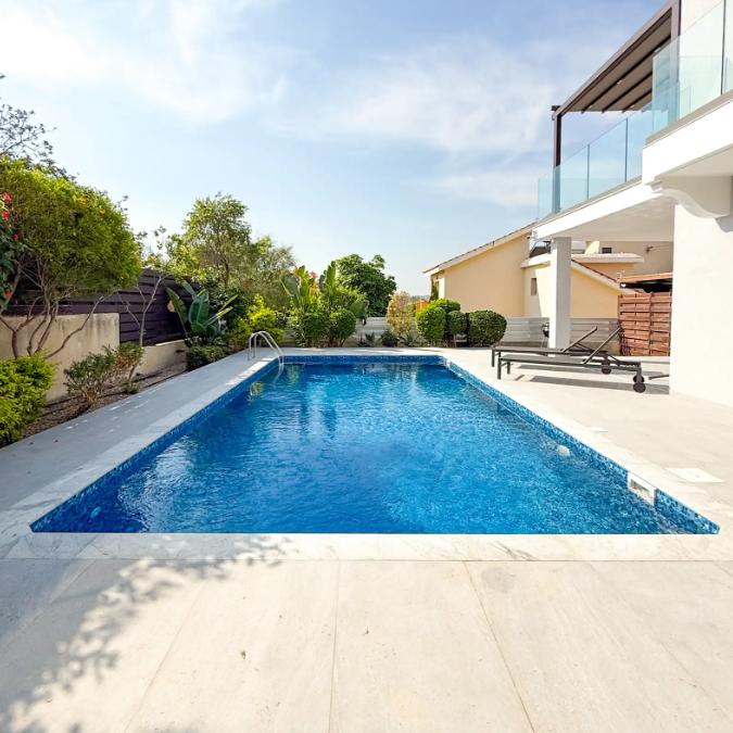 Three-bedroom villa for rent in the area of Agios Tychonas, Limassol with an area of 180 m2 with covered parking. The villa is new, built in 2025, fully furnished and decorated in a modern style, includes three bathrooms, a spacious living room with a fireplace, a fully equipped kitchen with built-in appliances, a game room and a pantry. There is a private swimming pool with a relaxation area and a well-maintained garden, a balcony with sea views on the upper floor, air conditioning in all rooms and Underfloor heating. The villa is located in a gated community in a quiet and safe area near the beach and with quick access to the highway.