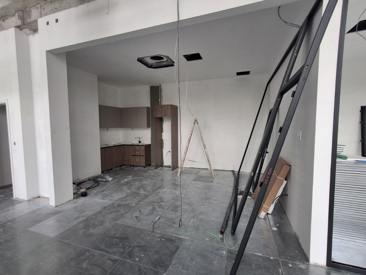 For rent a room for a store (0 floor + mezzanine) in a luxury business center. The commercial complex is located on Spyrou Kyprianou Avenue, one of the busiest streets in the prestigious area of Limassol city center. There are many office buildings with representatives of various financial, legal, insurance and IT companies. The room consists of three shops with a total indoor covered area of the lower level: 637m2 plus a mezzanine: 336m2. Covered parking for 16 cars.